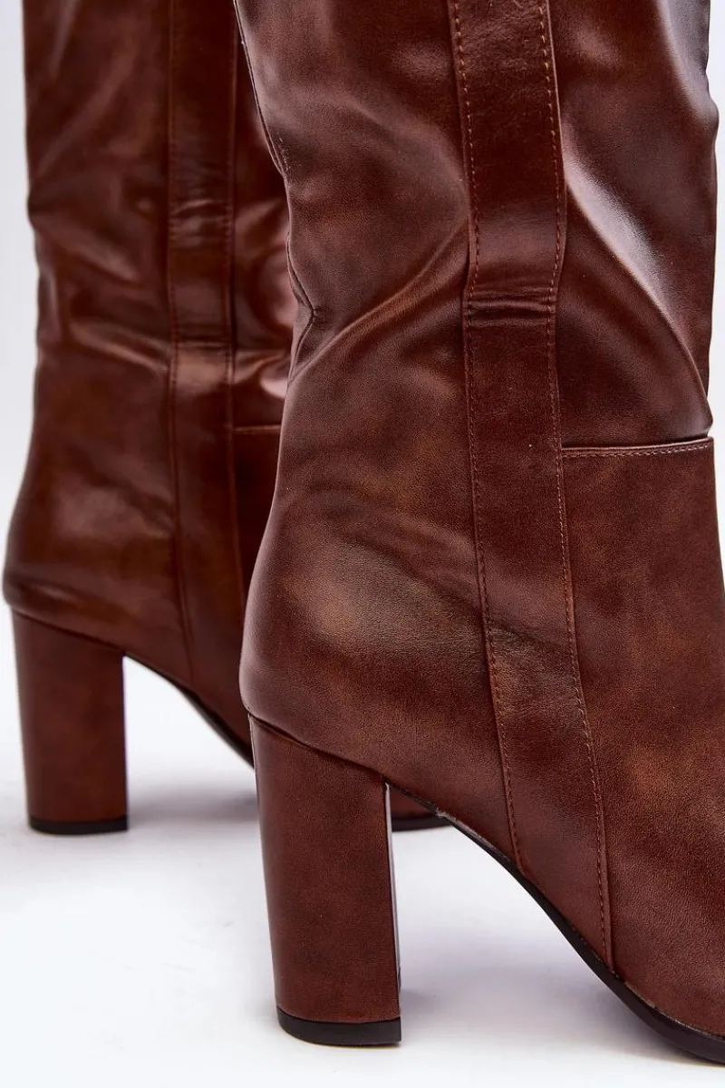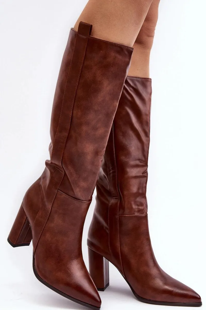 Eleganckie kozaki damskie z eko skóry to wyjątkowy model, który z pewnością podkreśli styl każdej kobiety. Wykonane z eko skóry. Osadzone na obcasie w postaci słupka. Noski w szpic optycznie wysmuklą nogi. Model wsuwany, cholewka przed kolano. Środek ocieplony kocem obuwniczym. Koniecznie musisz je mieć! Przy wyborze rozmiaru prosimy sugerować się tabelą rozmiarów.