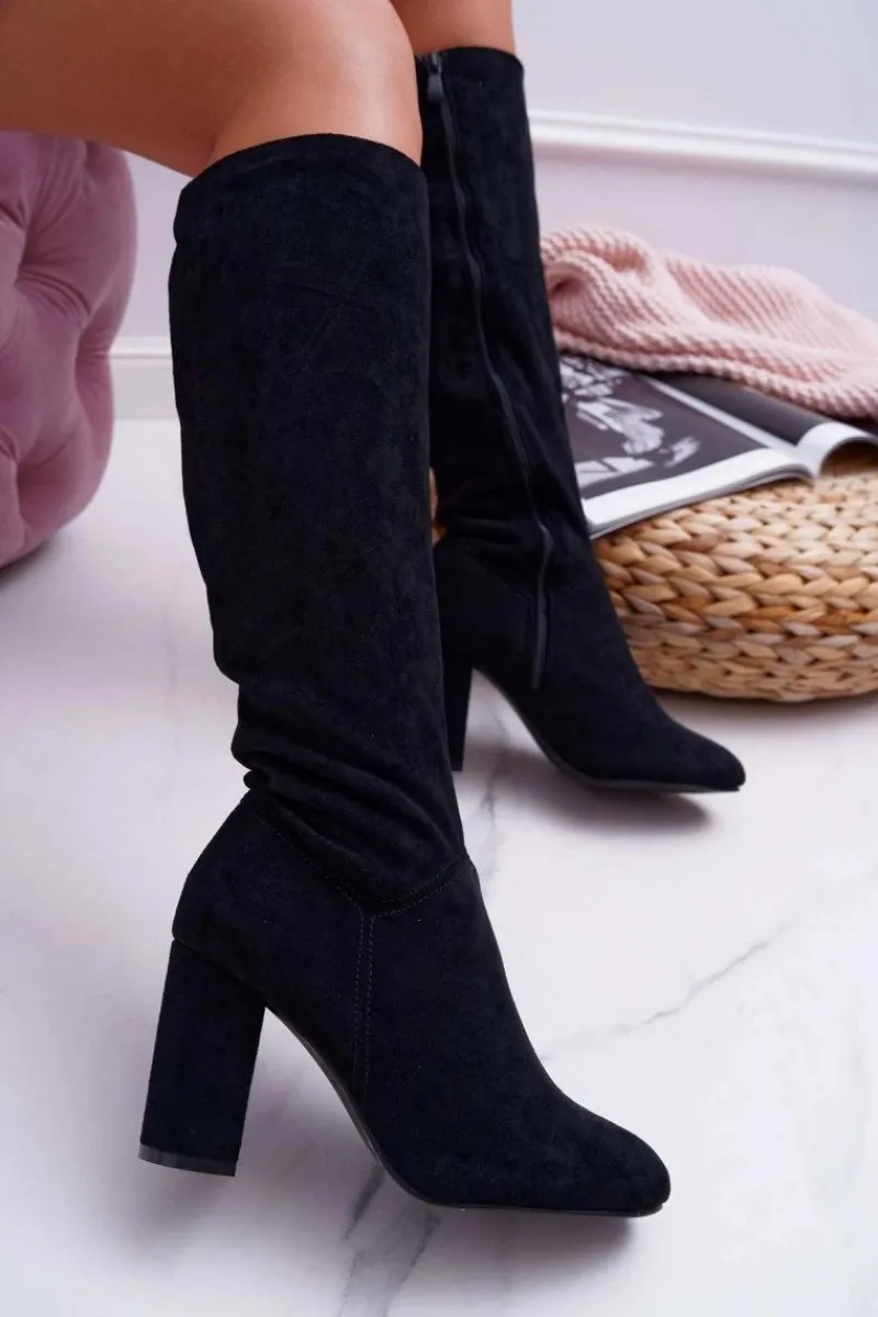 Kozaki Wiosenne|Kozaki Na Obcasie>Boto Kozaki Damskie Na Słupku Do Kolana Czarne Mercure