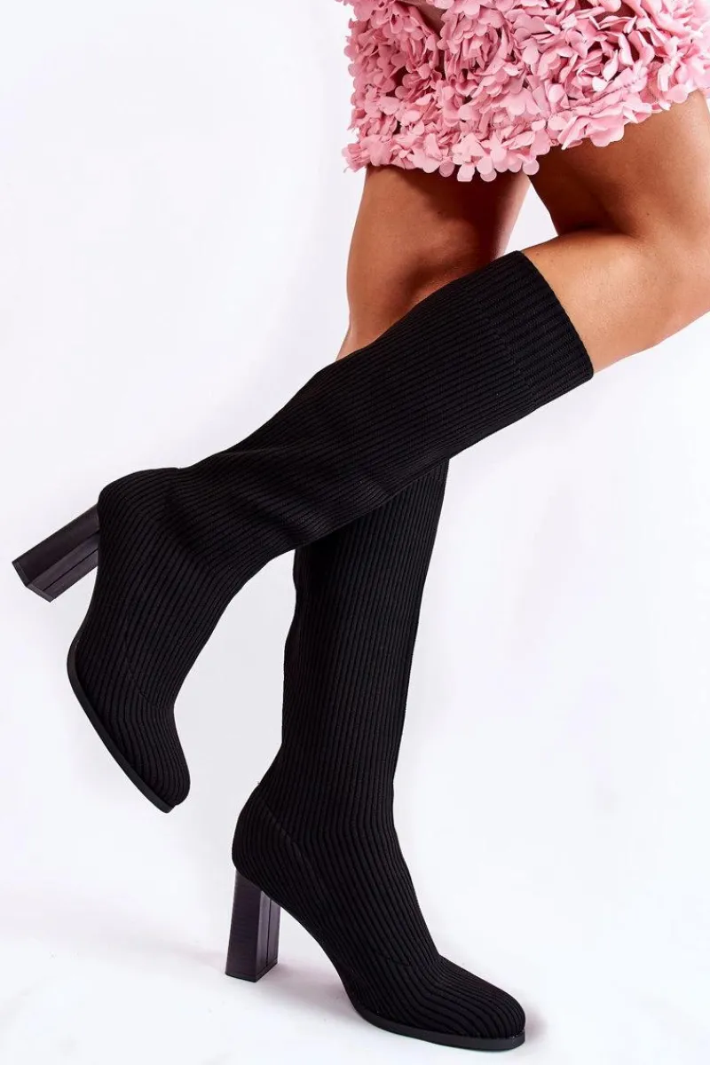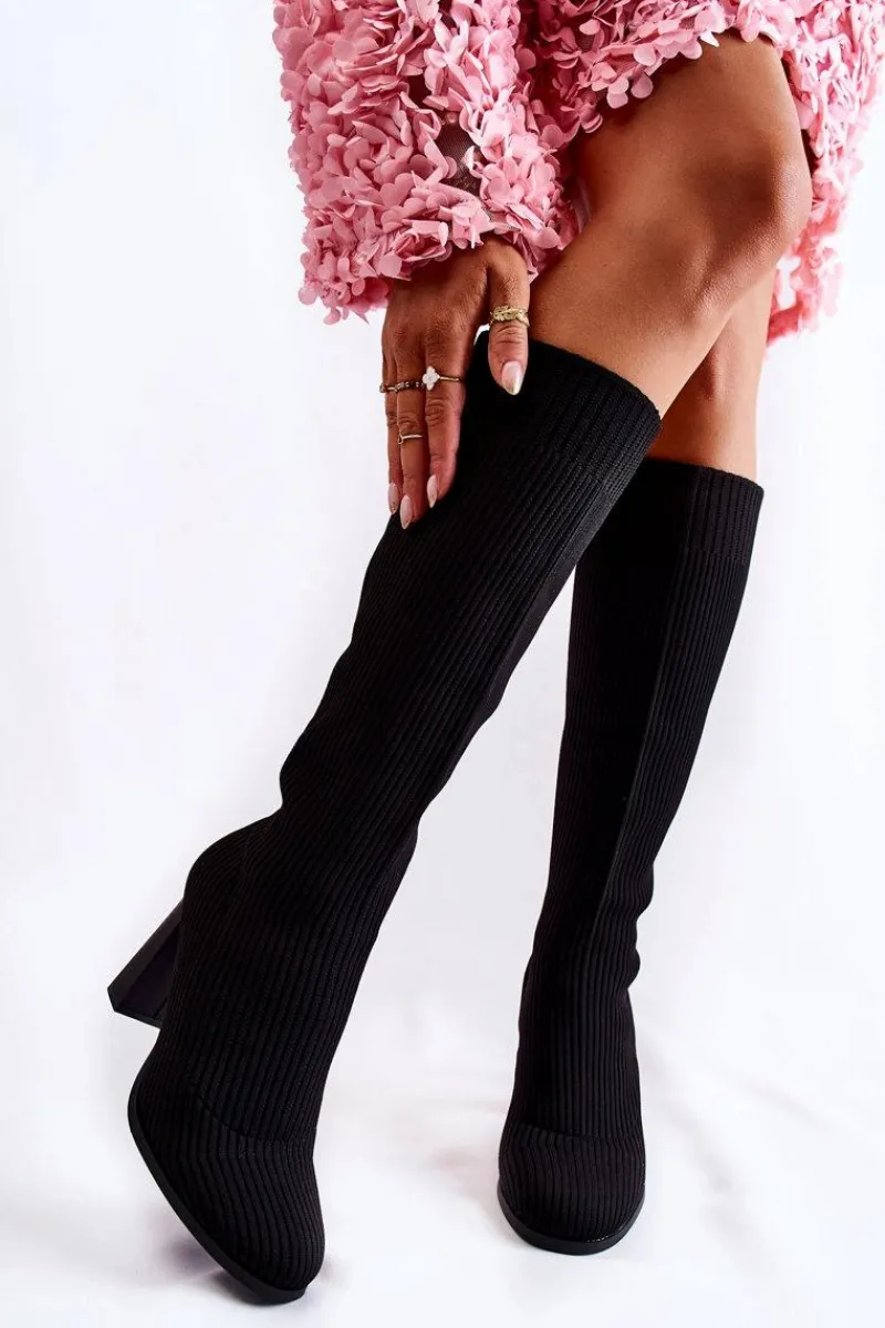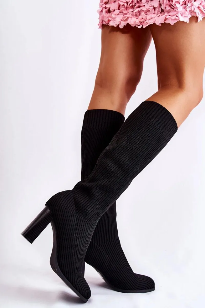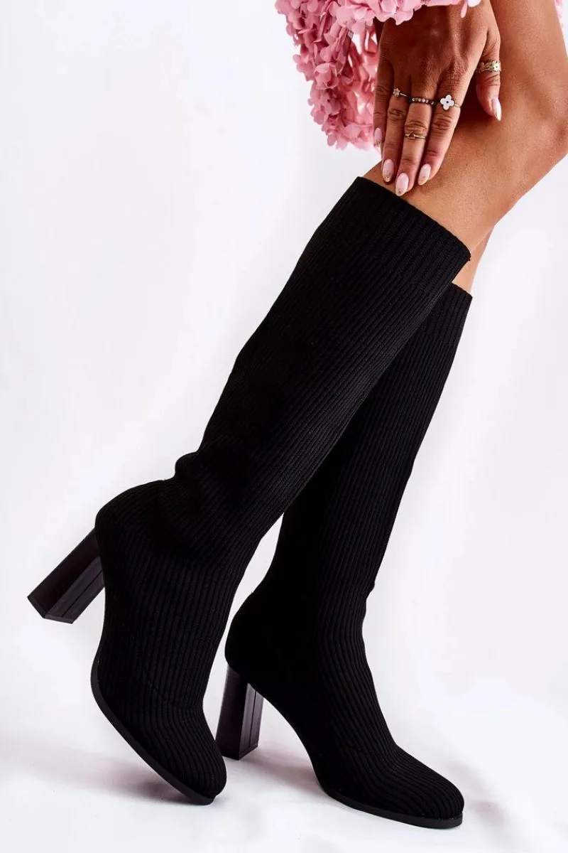 Klasyczne botki wykonane z prążkowanej tkaniny. Posiadają cholewkę do kolana. Model z zaokrąglonym, smukłym noskiem. Osadzone na obcasie w postaci słupka. Wkładka ocieplana delikatnym futerkiem. Zapiętek usztywniany. Model wsuwany. Świetnie sprawdzą się do wielu stylizacji. Nie czekaj dłużej i kup już dziś! Przy wyborze rozmiaru prosimy sugerować się tabelą rozmiarów.