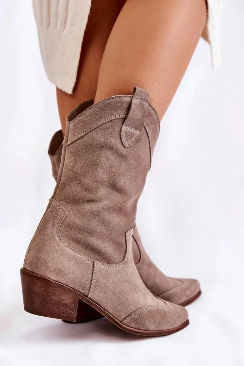 Kozaki – kowbojki zostały wykonane z przyjemnej w dotyku skóry naturalnej. Posiadają delikatne przeszycia na przodzie. Kozaki o fasonie kowbojek posiadają nosek w szpic oraz masywny obcas w postaci słupka. Model wsuwany z suwakiem z boku cholewki. Miękka, delikatnie ocieplona wkładka. Kozaki posiadają usztywniany zapiętek. Ten wyjątkowy model powinien być właśnie Twój! Przy wyborze rozmiaru prosimy sugerować się tabelą rozmiarów.