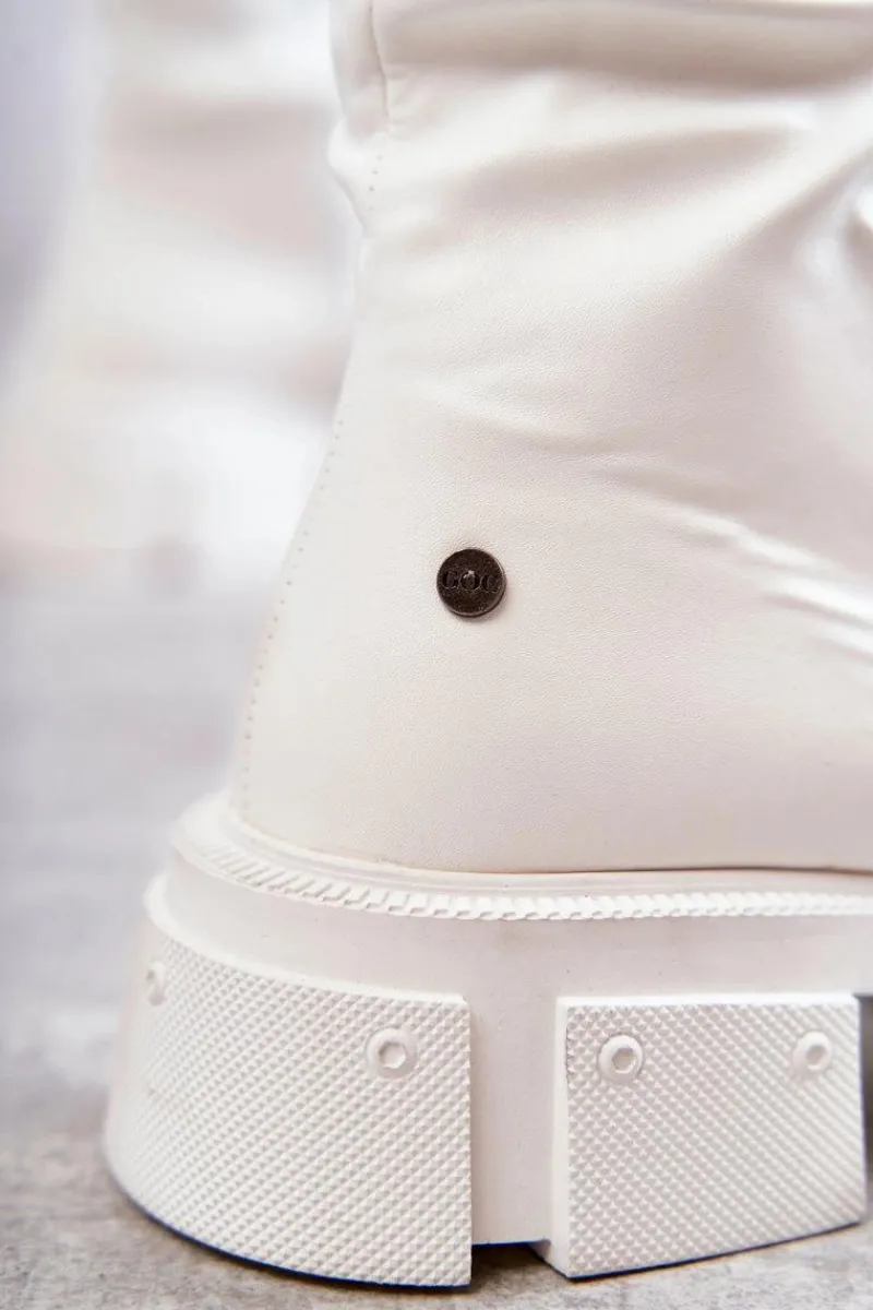 Niezwykłe kozaki damskie od marki GOE zostały wykonane z połączenia skóry ekologicznej i naturalnej. Model wsuwany, z dodatkowym zamkiem na cholewce. Osadzone na platformie i płaskim obcasie ze żłobieniami. Kozaki zostały ocieplone miłym w dotyku kocem obuwniczym. Zapiętek jest usztywniany. Ten model to HIT tego sezonu! Przy wyborze rozmiaru prosimy sugerować się tabelą rozmiarów.