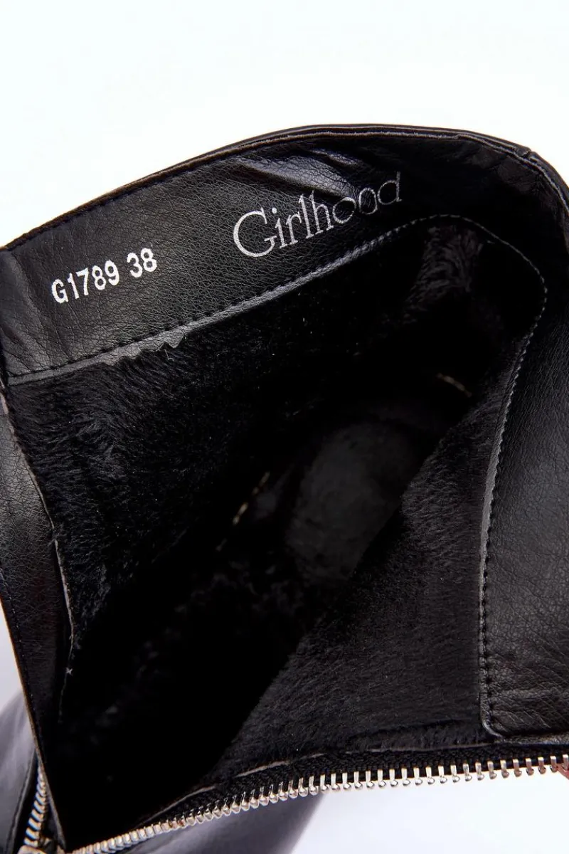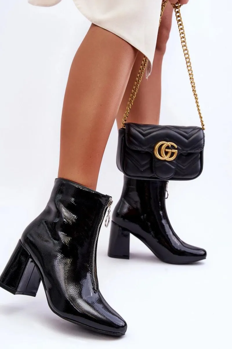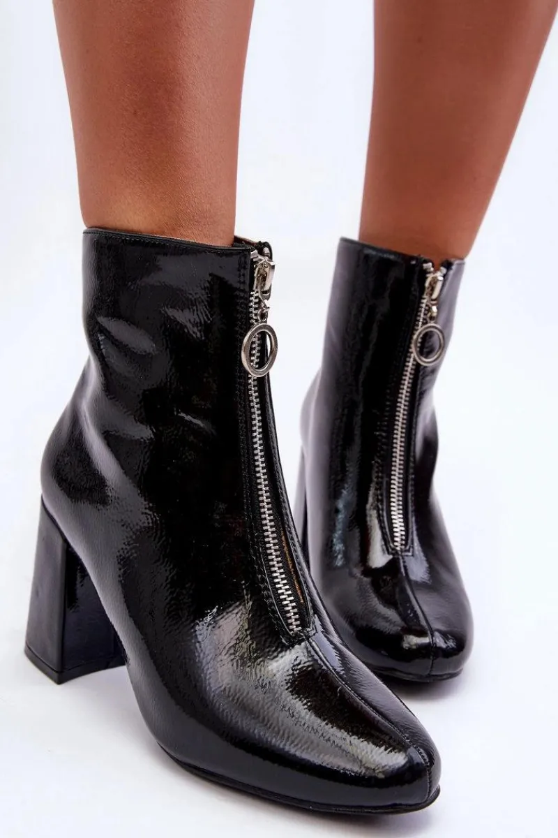 Modne, damskie botki posiadają cholewkę za kostkę oraz migdałowy nosek. Wykonane z eko skóry. Posiadają zapięcie na zamek błyskawiczny z przodu cholewki. Botki osadzono na obcasie w postaci słupka. Wewnątrz zostały ocieplone miękkim kocem obuwniczym. Dodatkowo posiadają usztywniany zapiętek. Przy wyborze rozmiaru prosimy sugerować się tabelą rozmiarów.
