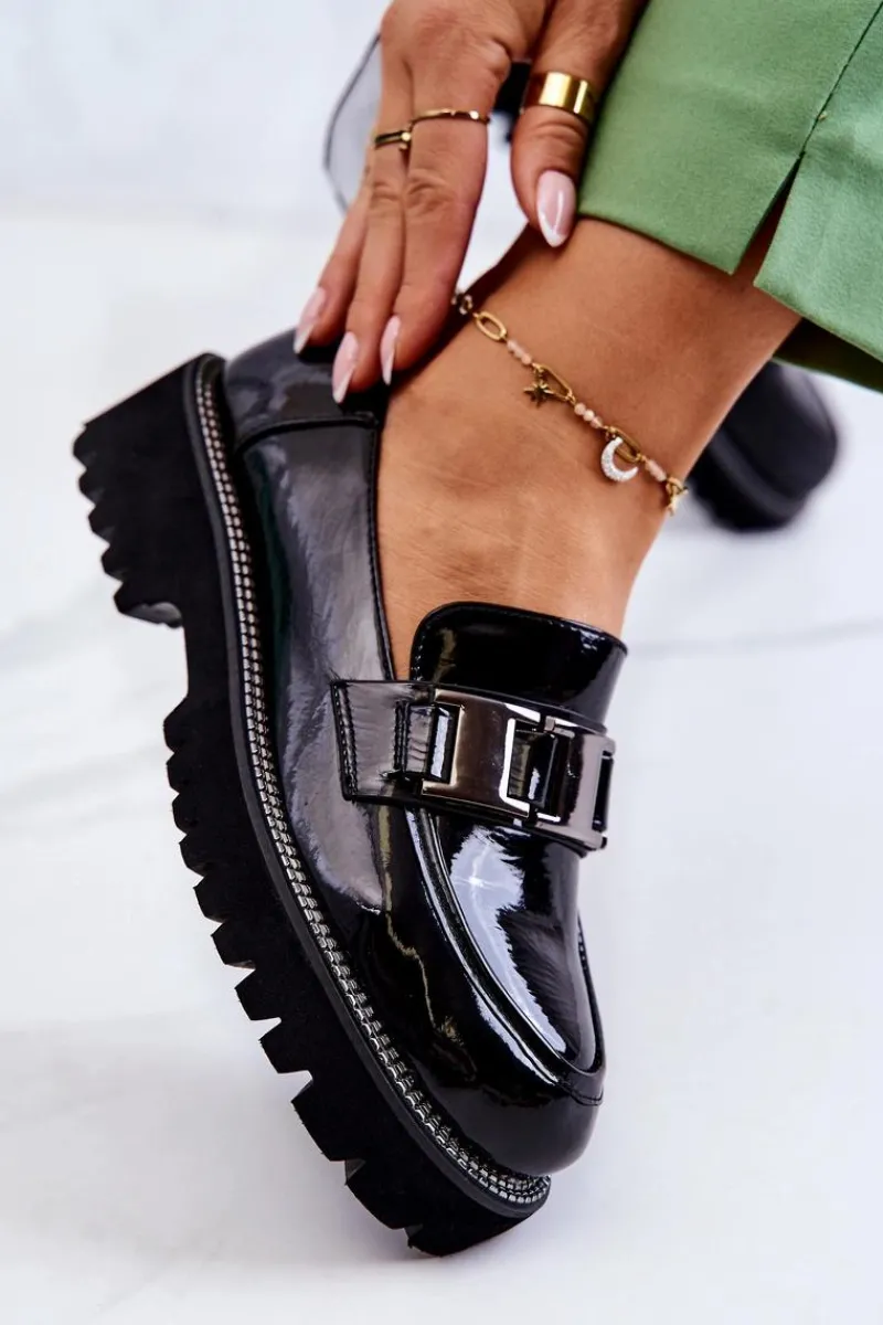 Cudne, wykonane z eko skóry półbuty w stylu loaferów! Ten fason idealnie sprawdzi się w sezonie wiosenno-jesiennym. Cholewka do kostki, z paskiem na przodzie przyozdobionym metalowym elementem. Nosek zaokrąglony. Podeszwa wykonana z tworzywa sztucznego z dużym bieżnikiem. Płaski obcas zapewni stabilność na każdym kroku. Miękka, wygodna wkładka została wykonana z naturalnej skóry. Ten model idealnie sprawdzi się zarówno w casualowych, jak i bardziej eleganckich outfitach! Przy wyborze rozmiaru prosimy sugerować się tabelą rozmiarów.