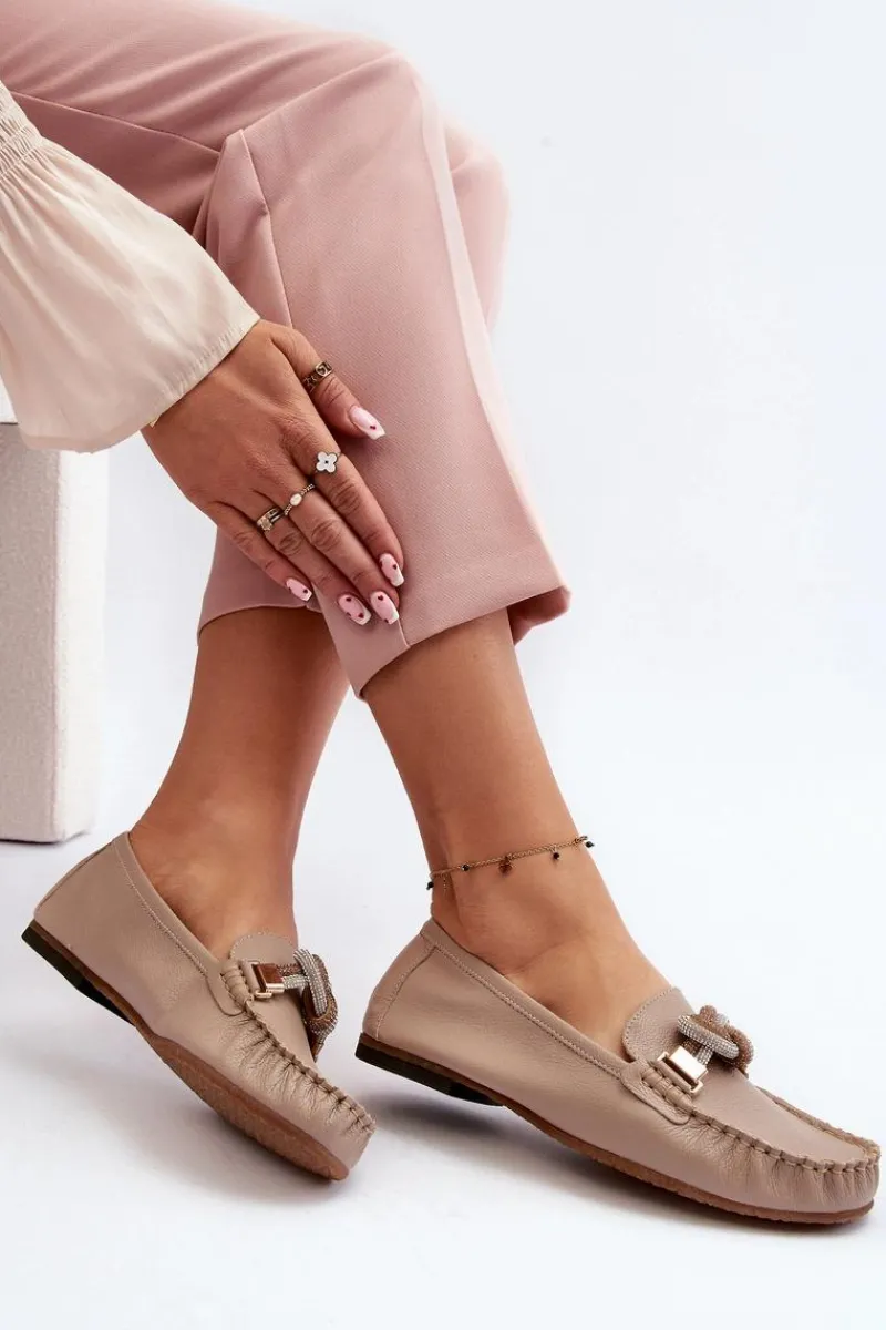 Miękkie mokasyny marki Laura Messi zostały wykonane ze skóry naturalnej. Osadzone na płaskim obcasie. Z przodu ozdoba. Skórzana wkładka zapewni wygodę podczas użytkowania. Noski zaokrąglone. Ten elegancki fason koniecznie musi być Twój! Przy wyborze rozmiaru prosimy sugerować się tabelą rozmiarów.