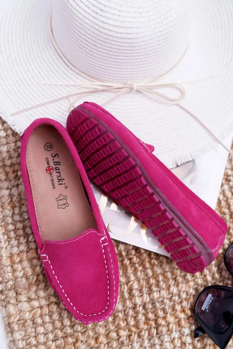 Mokasyny Damskie Zamszowe>Damskie buty S.Barski Mokasyny Damskie Skóra Zamszowa Fuksja Tenzion