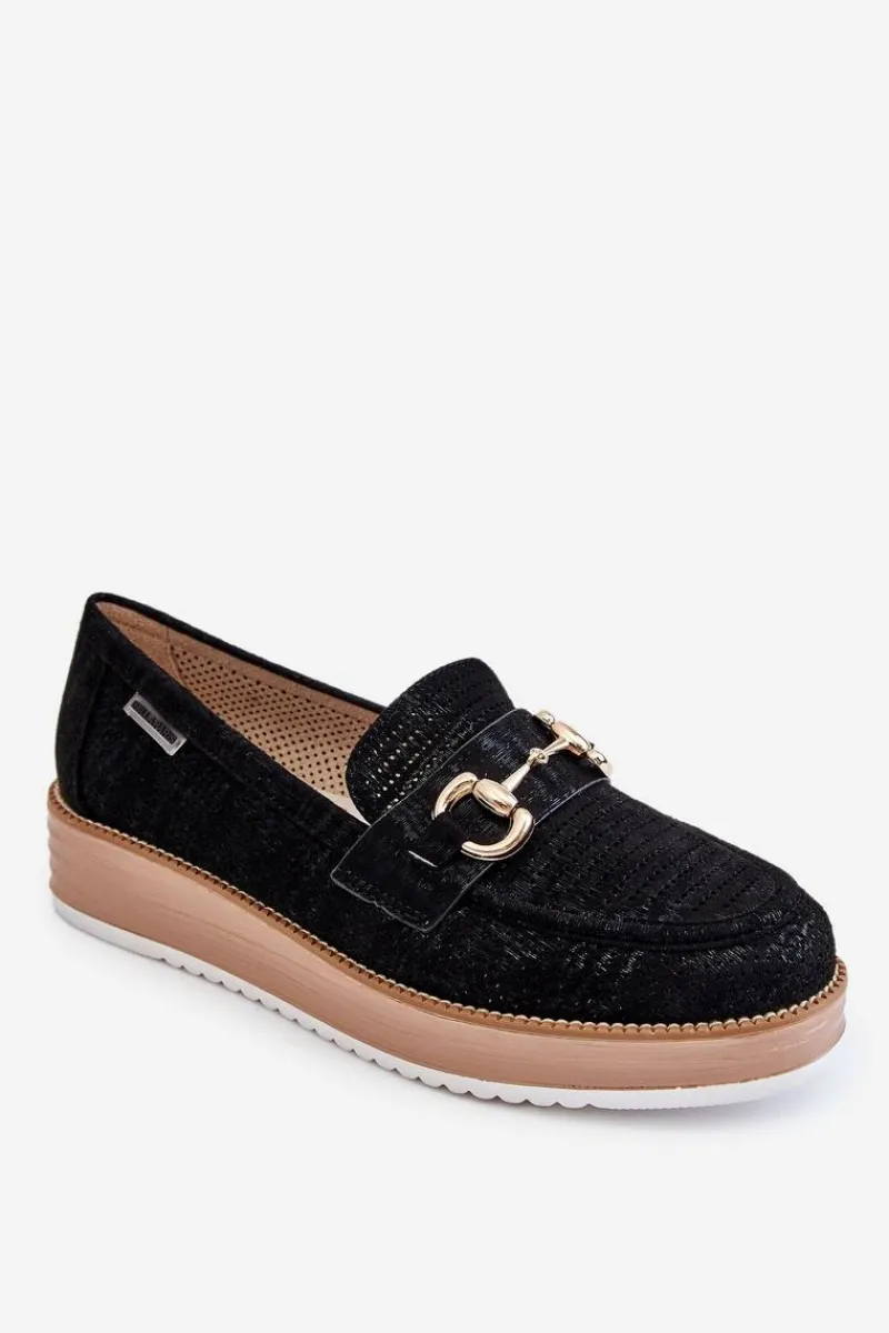 Klasyczne mokasyny damskie zostały osadzone na delikatnym koturnie i platformie. Wykonane z materiału przypominającego eko zamsz. Miękka wkładka z naturalnej skóry zapewni wygodę podczas użytkowania. Dodatkowo mokasyny te posiadają usztywniany zapiętek. Na przodzie znajduje się ozdobny element. Idealne do wielu wiosenno-jesiennych stylizacji. Przy wyborze rozmiaru prosimy sugerować się tabelą rozmiarów.