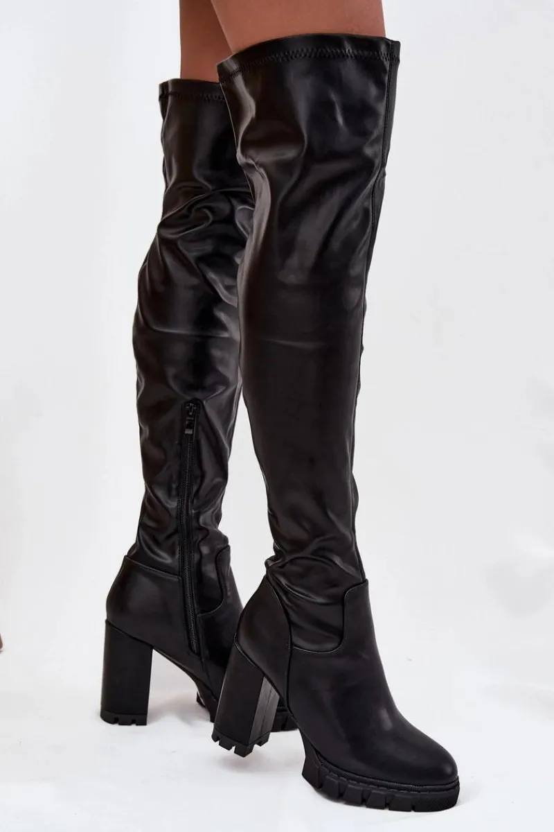 Kozaki damskie z wysoką cholewką za kolano to kobieca propozycja, która pięknie podkreśla nogi. Model osadzony na wysokim obcasie typu słupek optycznie wysmukla sylwetkę, a jednocześnie zapewnia stabilność i wygodę podczas noszenia. Zaokrąglone noski nadają całości delikatnego, klasycznego charakteru. Kozaki są wsuwane, a zamek umieszczony z boku ułatwia ich zakładanie. To idealny wybór dla kobiet, które cenią modny wygląd — doskonale komponują się zarówno z sukienkami i spódnicami, jak i krótkimi spodenkami, tworząc efektowne stylizacje. Przy wyborze rozmiaru prosimy sugerować się tabelą rozmiarów.