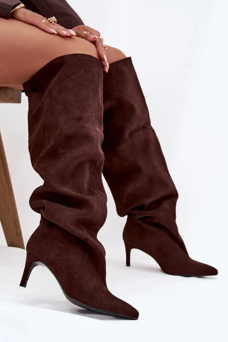 Kozaki damskie na szpilce wsuwane czekoladowe Mavilla