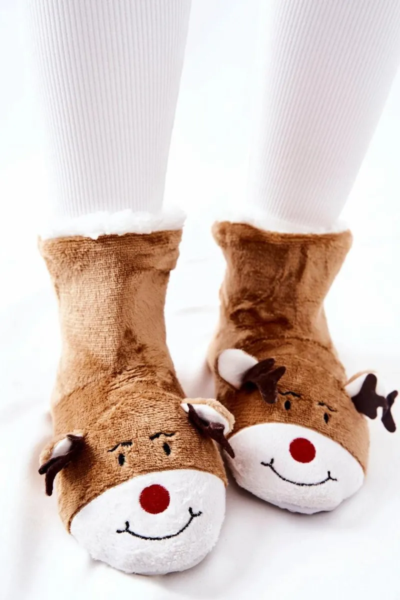 New Aura.via Świąteczne Papcie Ocieplane Renifer Beżowe