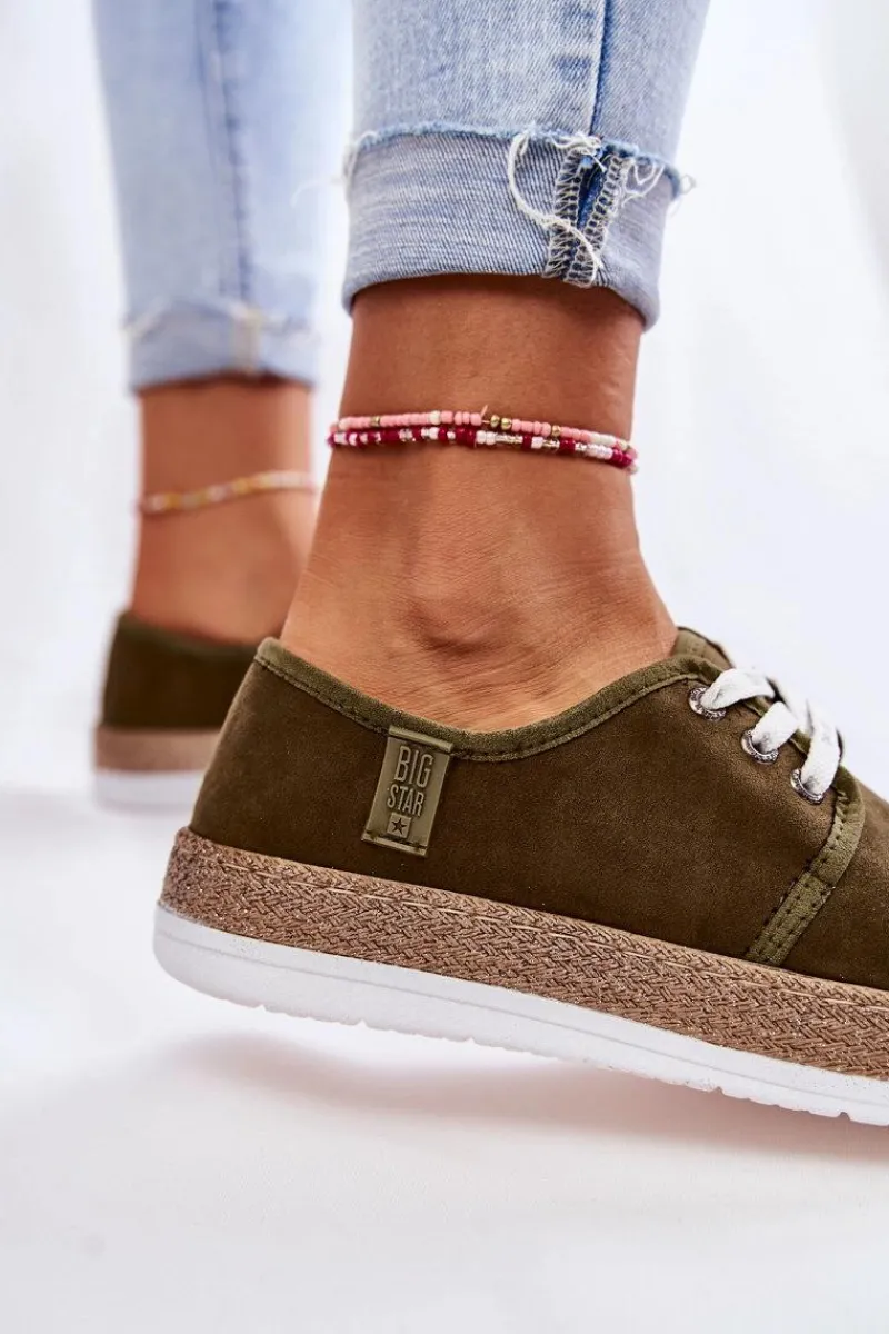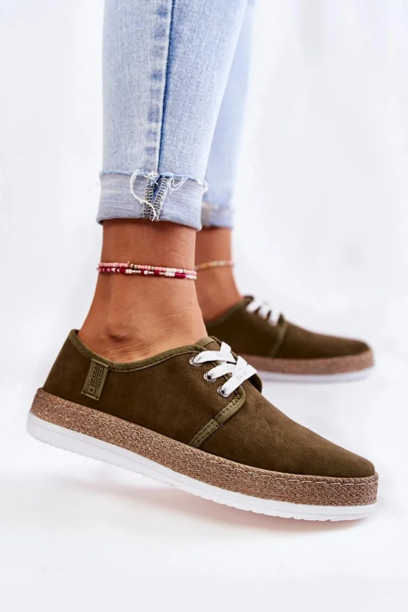 Niskie trampki damskie marki Big Star zostały wykonane z miłego w dotyku eko zamszu. Model wiązany na sznurowadła z logo marki Big Star. Buty zostały osadzone na platformie ozdobionej plecionką z gumowego tworzywa. Wkładka Memory Foam System zapamiętuje kształt stopy, co zapewnia doskonałe dopasowanie, absorbuje wstrząsy oraz jest odporna na odkształcenia. Struktura pianki pozwala na odparowanie wilgoci i regulację temperatury. Ten model powinien być Twój! Przy wyborze rozmiaru prosimy sugerować się tabelą rozmiarów.