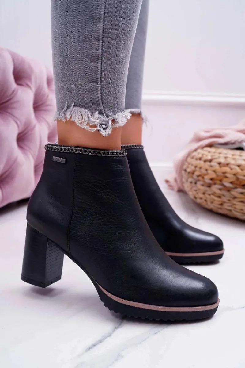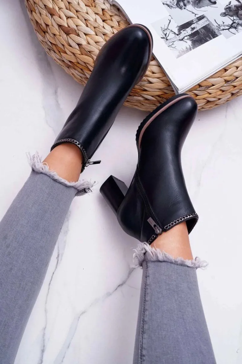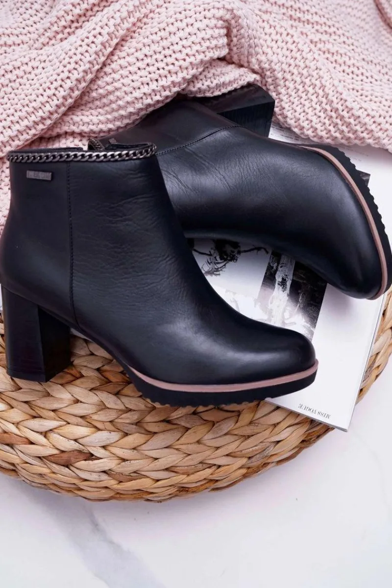New Botki Damskie Na Obcasie Skóra Big Star Czarne BB274618 Damskie Botki Na Słupku|Botki Zimowe Damskie