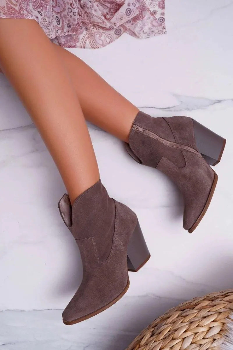 New Botki Damskie Na Obcasie Skóra Zamsz Cappuccino Nicole 2433 Damskie Botki Na Słupku|Brązowe I Beżowe Botki
