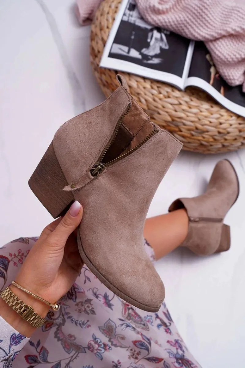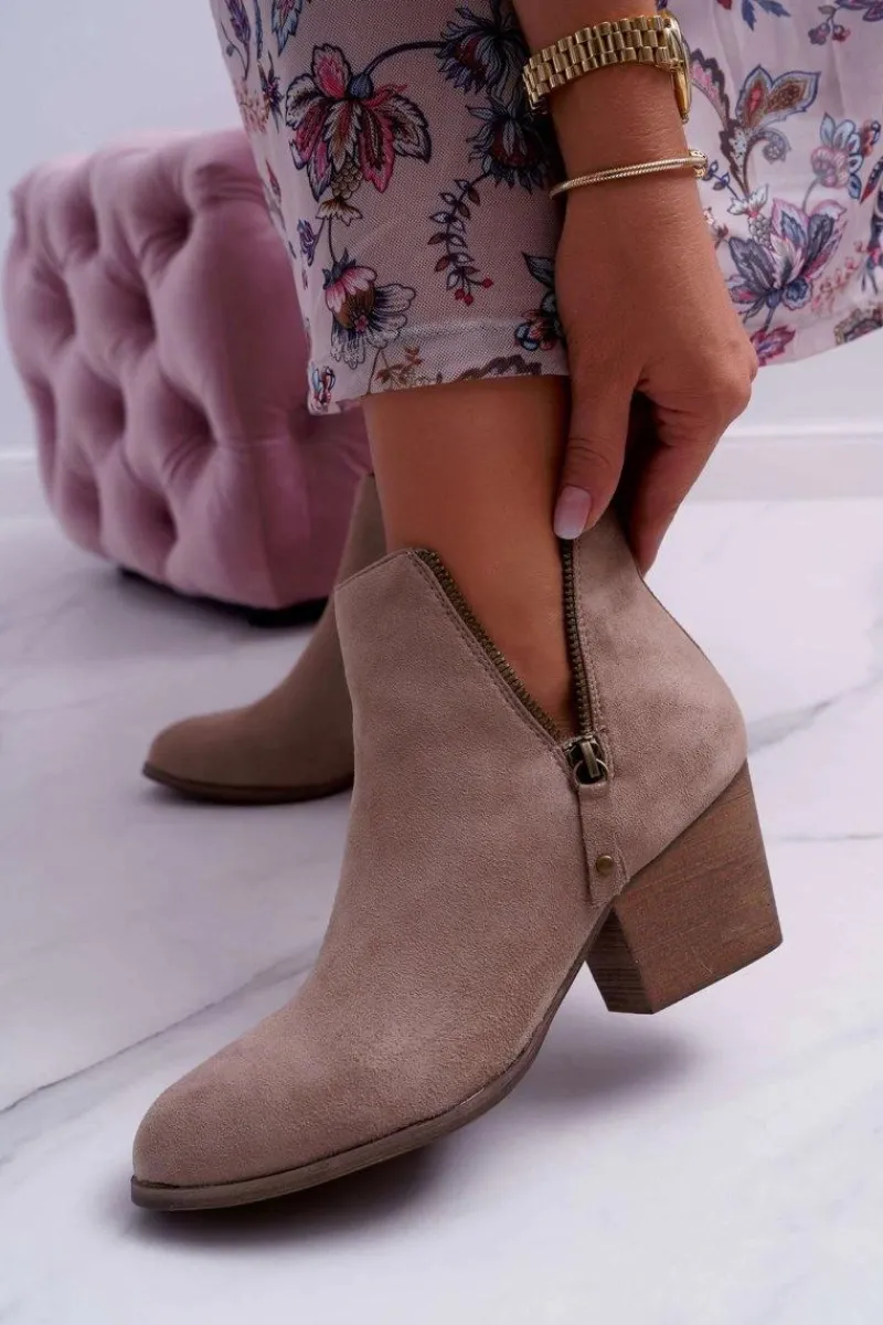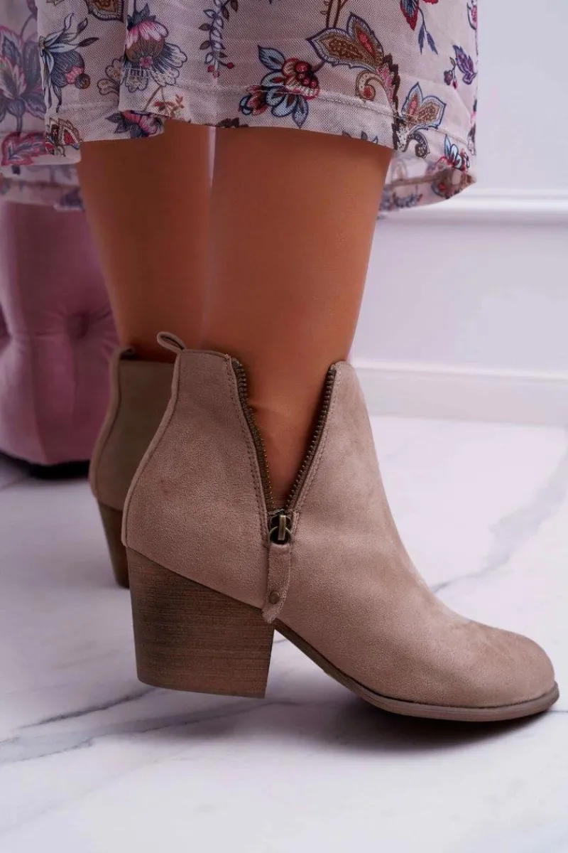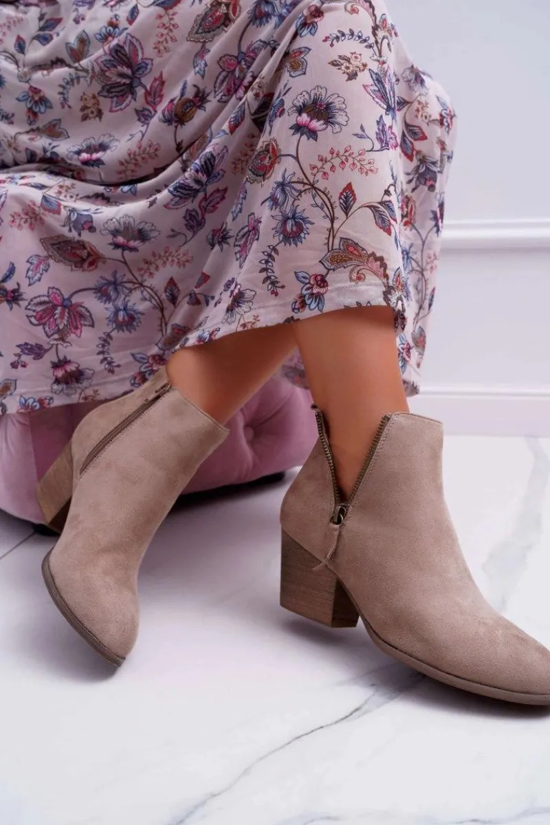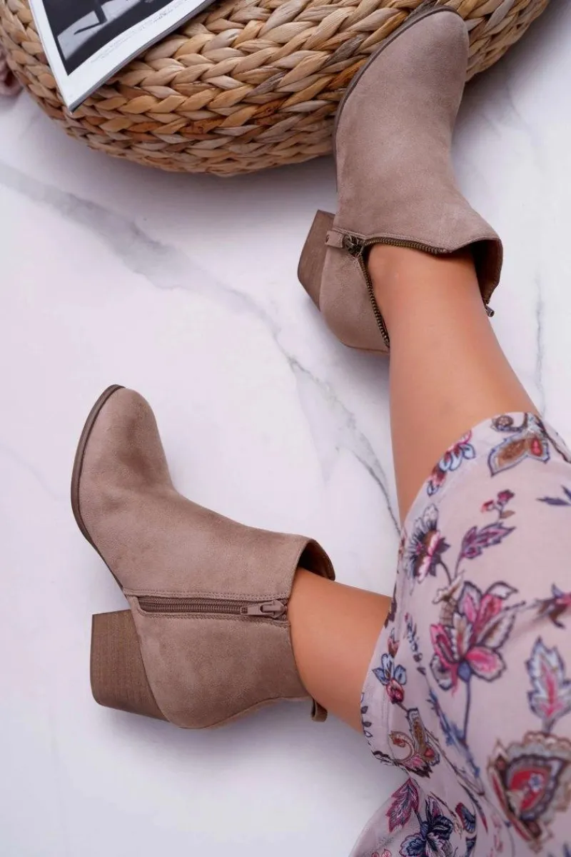 New Botki Damskie Na Obcasie Suwak Zamszowe Beżowe Farre Damskie Botki Na Słupku|Botki Na Obcasie