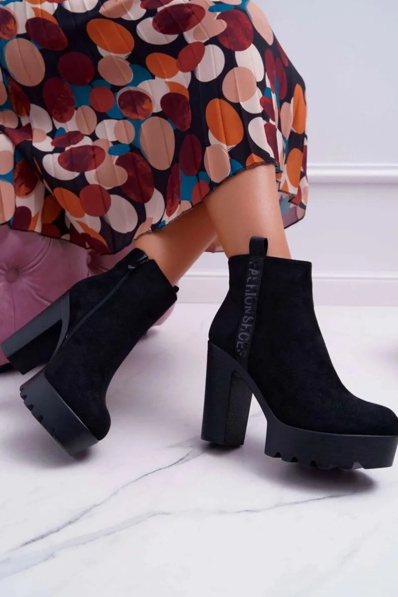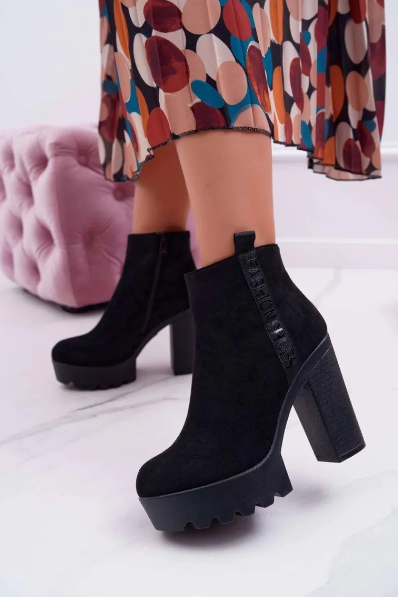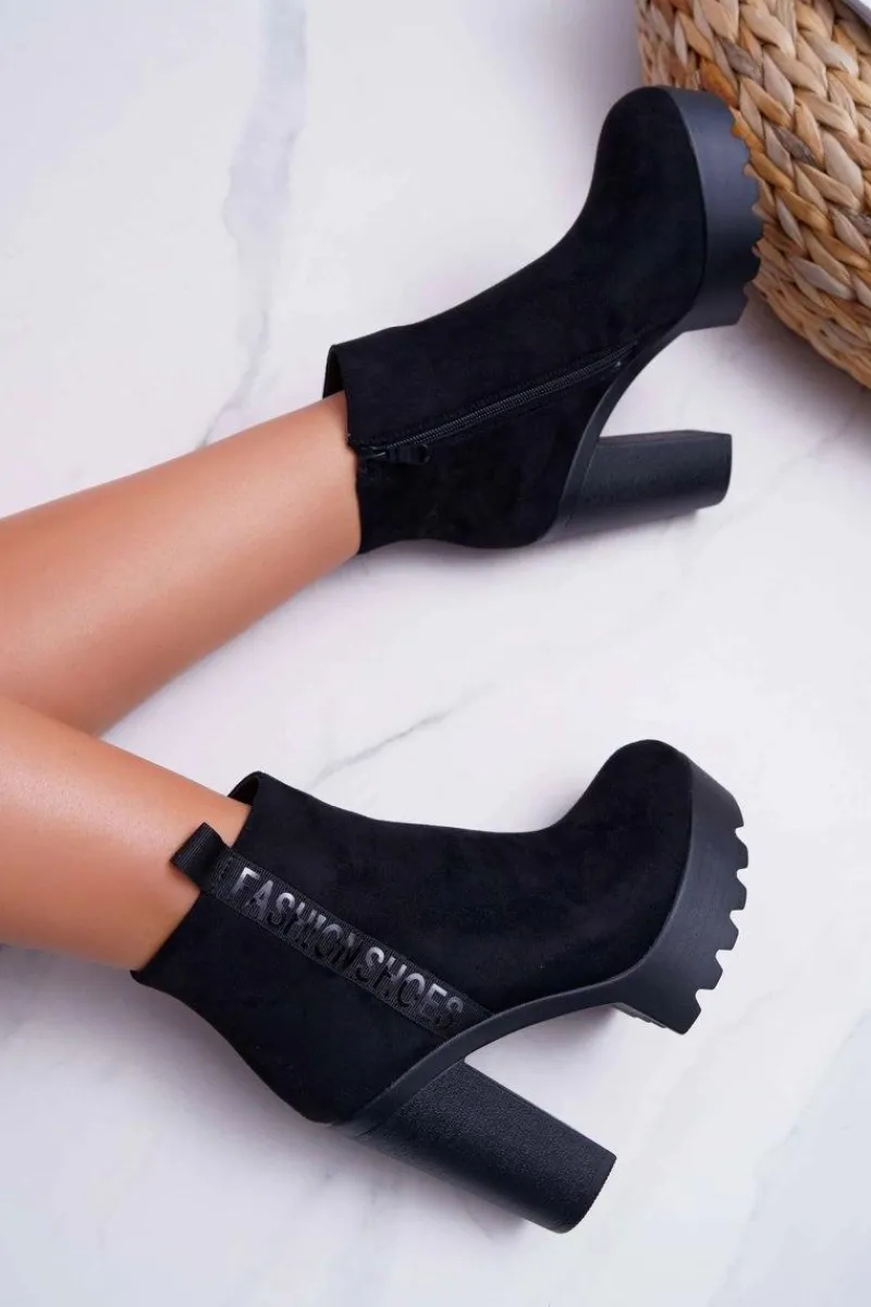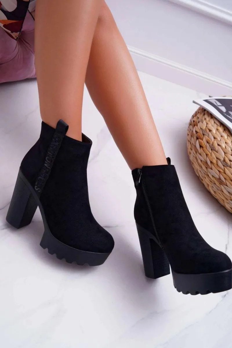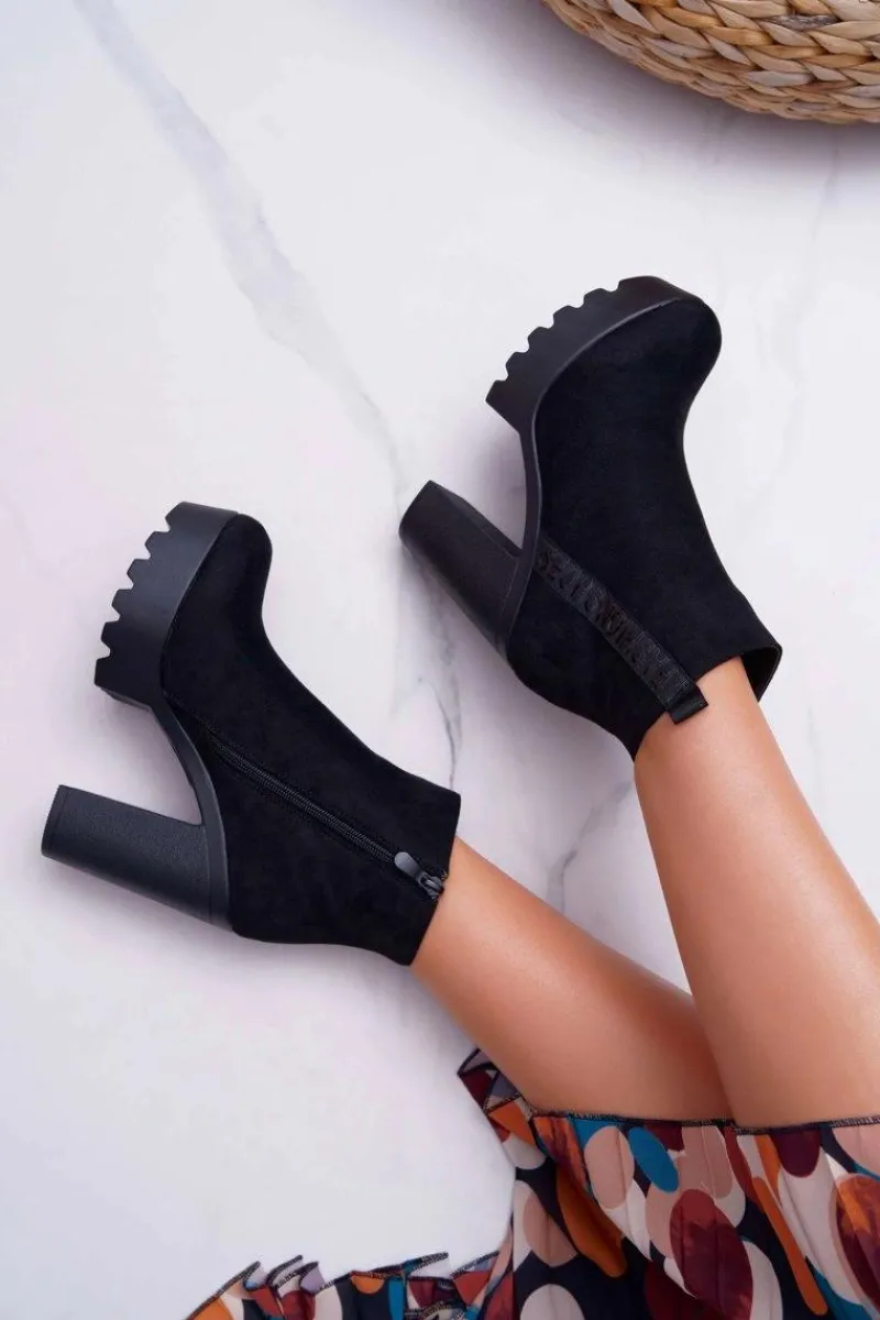 New Botki Damskie na Słupku Platforma Zamszowe Czarne Estacado Damskie Botki Na Słupku|Botki Zimowe Damskie