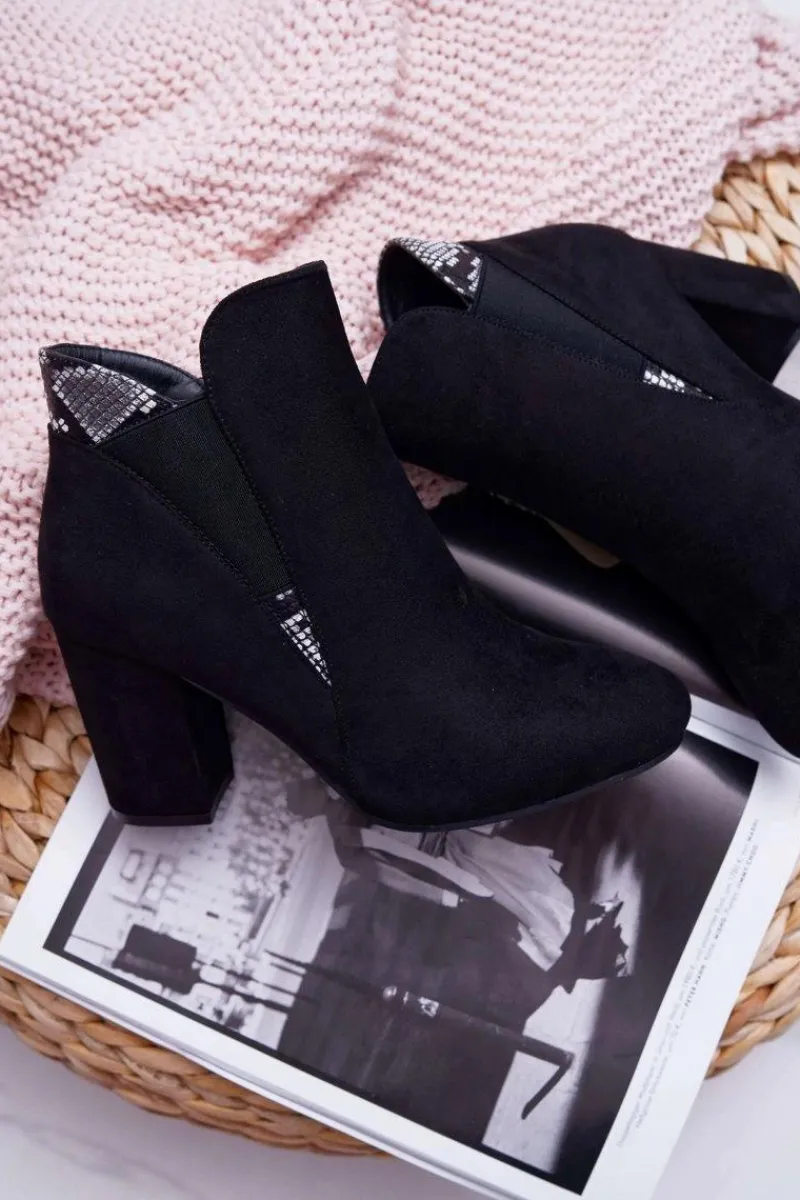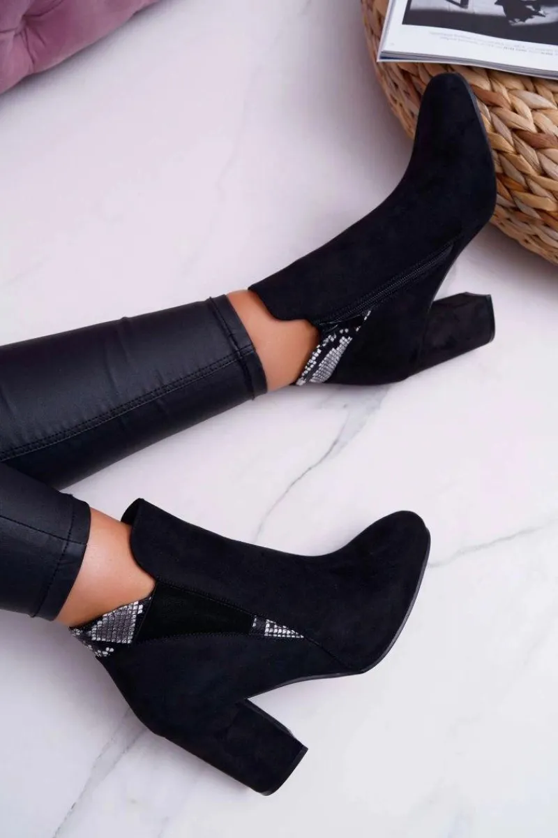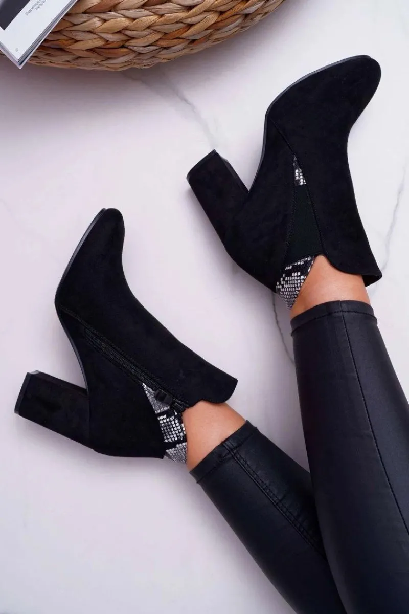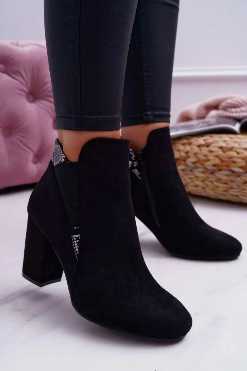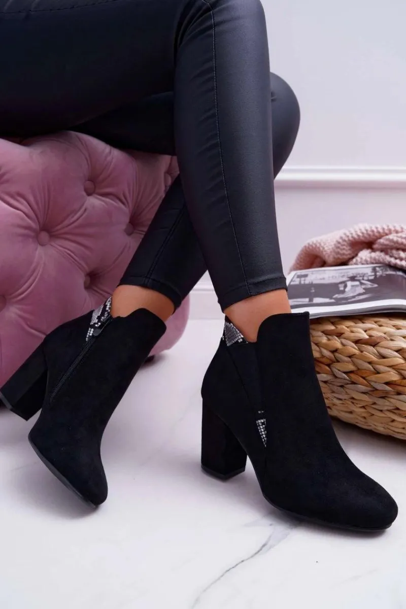 New Botki Damskie na Słupku Zamszowe Czarne Jollow Damskie Botki Na Słupku|Botki Zimowe Damskie