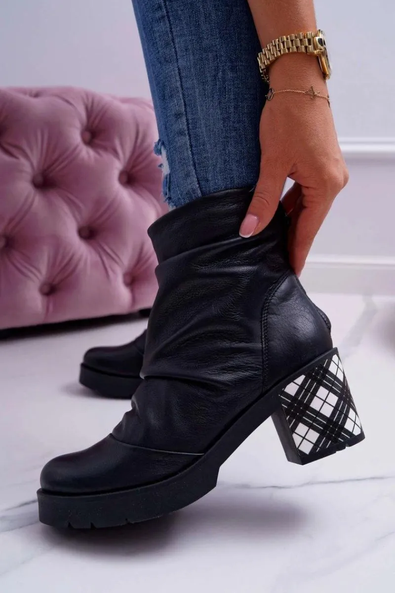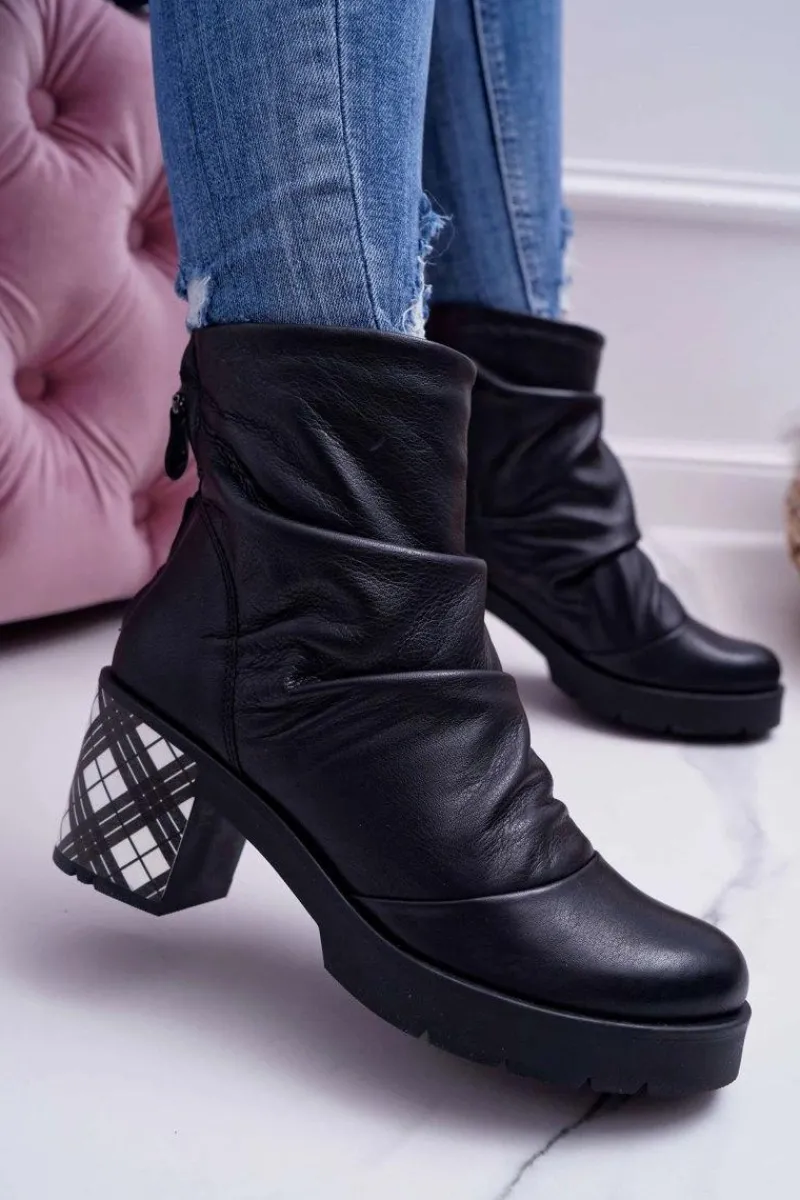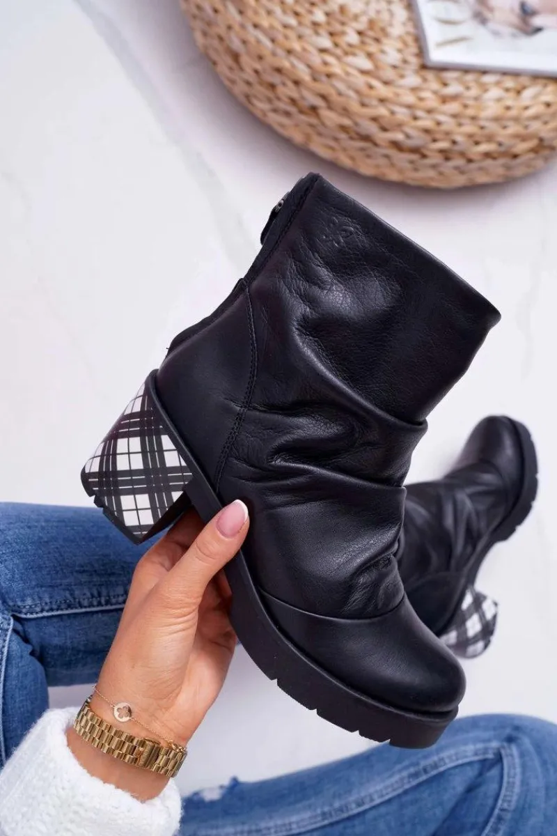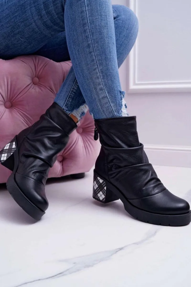 New Botki Damskie Skórzane Czarne 04216-01 Damskie Botki Maciejka|Botki Na Słupku