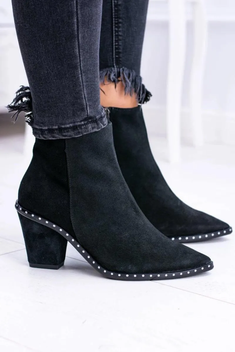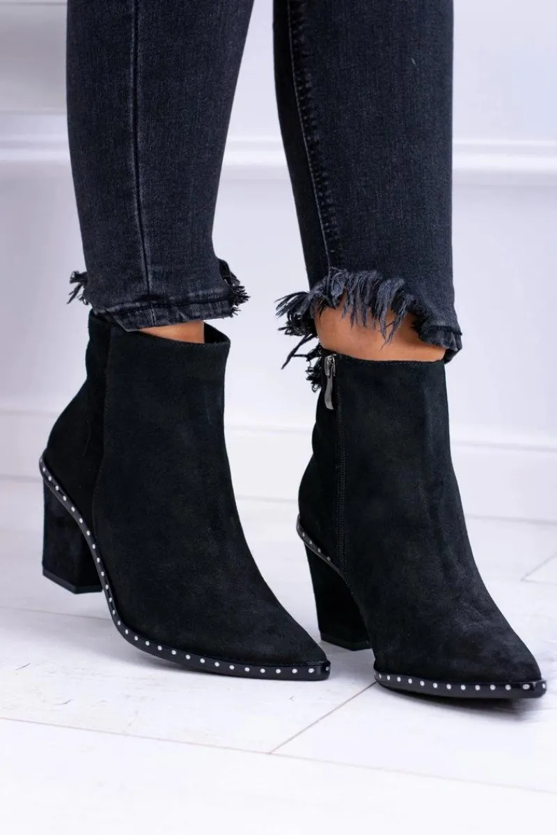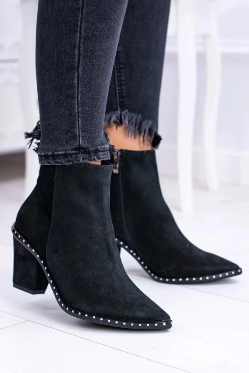 Niezwykle eleganckie botki na słupku! Wykonane z delikatnego w dotyku zamszu. Świetne na każdą okazję! Idealne dopasowane do stopy. Zakładanie ułatwi wszyty na boku suwak. Wnętrze pokryte ciepłym i miłym w dotyku filcem, przez co nie musimy się martwić co ubrać w chłodne dni. Uzupełnij swoją kolekcję w te wspaniałe skórzane botki z noskiem w szpic. Sprawdź teraz wszystkie nasze botki!