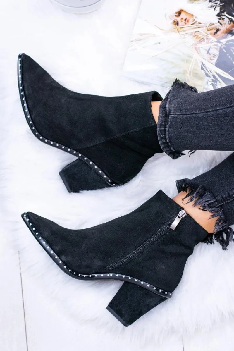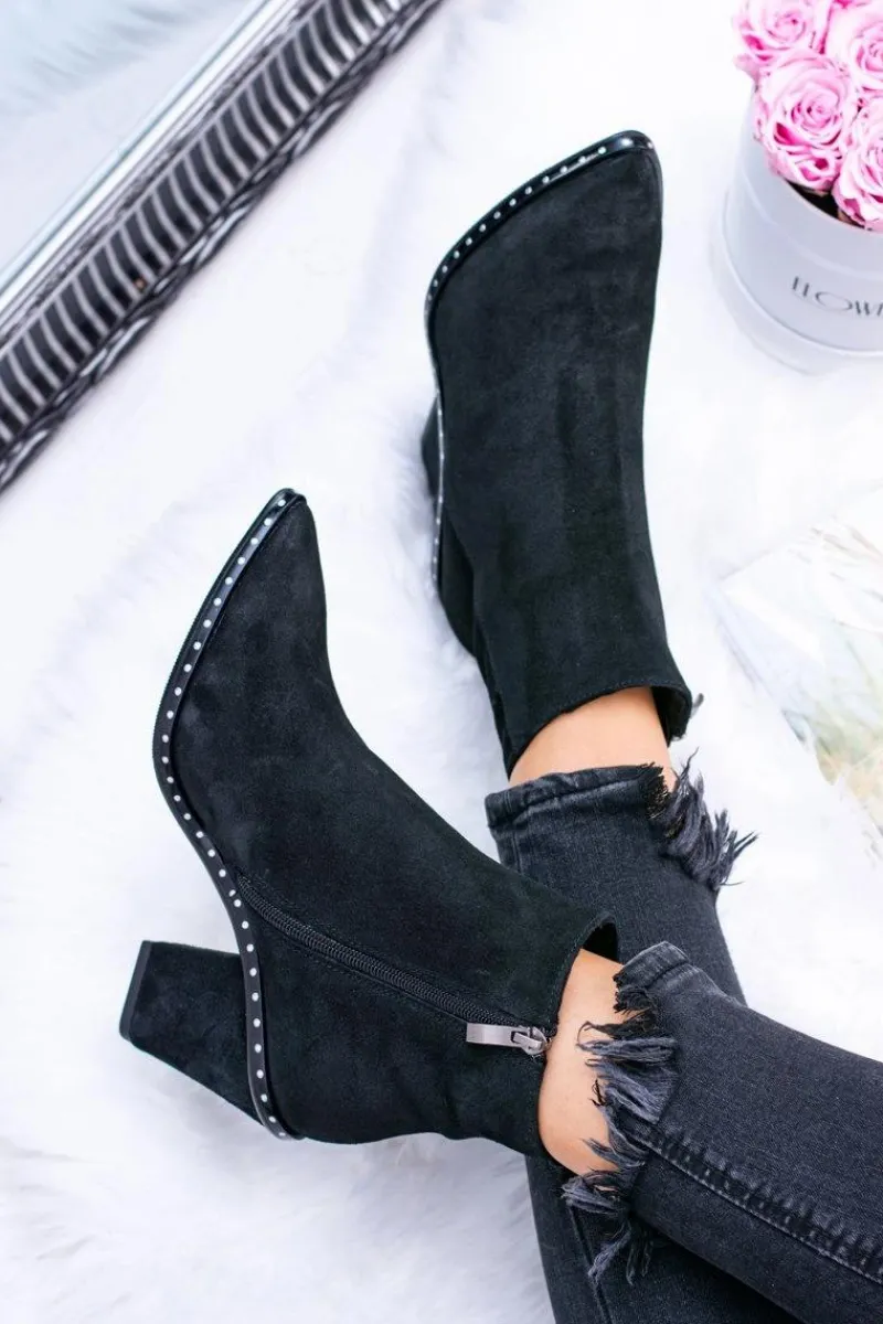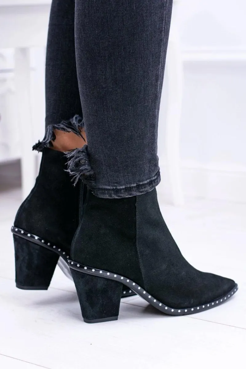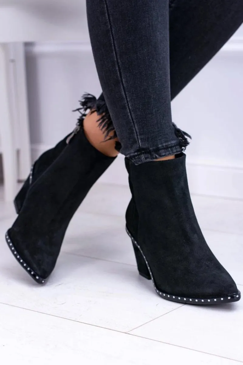 Niezwykle eleganckie botki na słupku! Wykonane z delikatnego w dotyku zamszu. Świetne na każdą okazję! Idealne dopasowane do stopy. Zakładanie ułatwi wszyty na boku suwak. Wnętrze pokryte ciepłym i miłym w dotyku filcem, przez co nie musimy się martwić co ubrać w chłodne dni. Uzupełnij swoją kolekcję w te wspaniałe skórzane botki z noskiem w szpic. Sprawdź teraz wszystkie nasze botki!