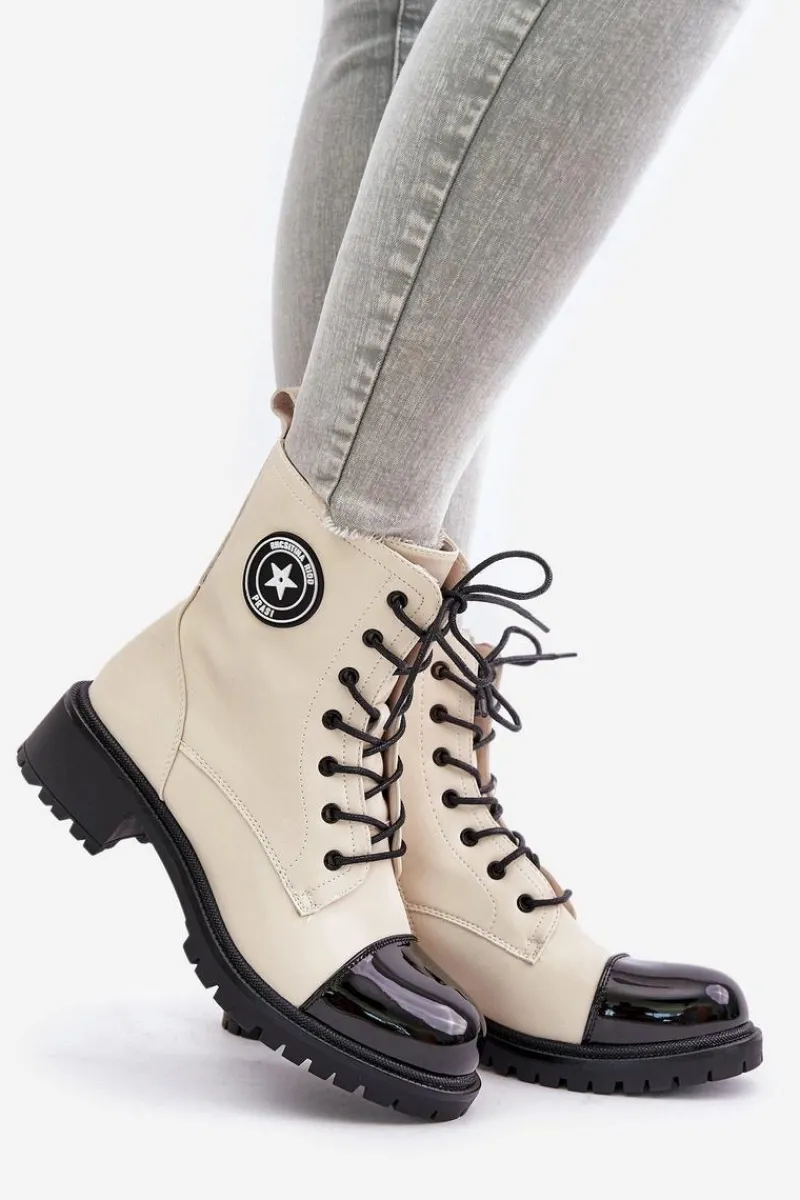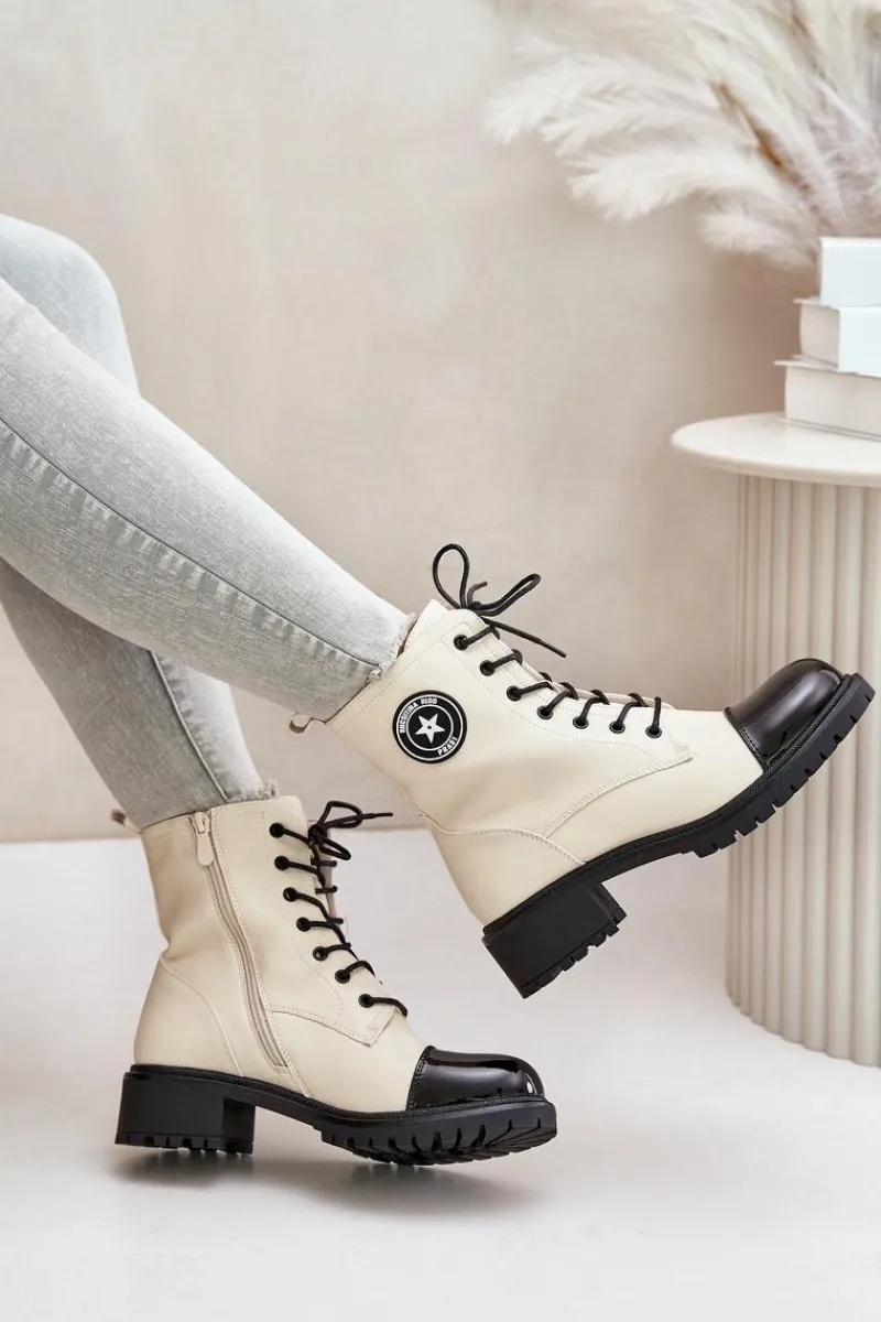 Damskie botki workery wykonane z ekologicznej skóry, ocieplane kocem obuwniczym, idealnie sprawdzą się w chłodniejsze dni. Model zapinany na zamek oraz sznurowany, co zapewnia doskonałe dopasowanie do stopy i wygodę noszenia. Klasyczny design w połączeniu z funkcjonalnością czyni je stylowym wyborem na co dzień. Przy wyborze rozmiaru prosimy sugerować się tabelą rozmiarów.