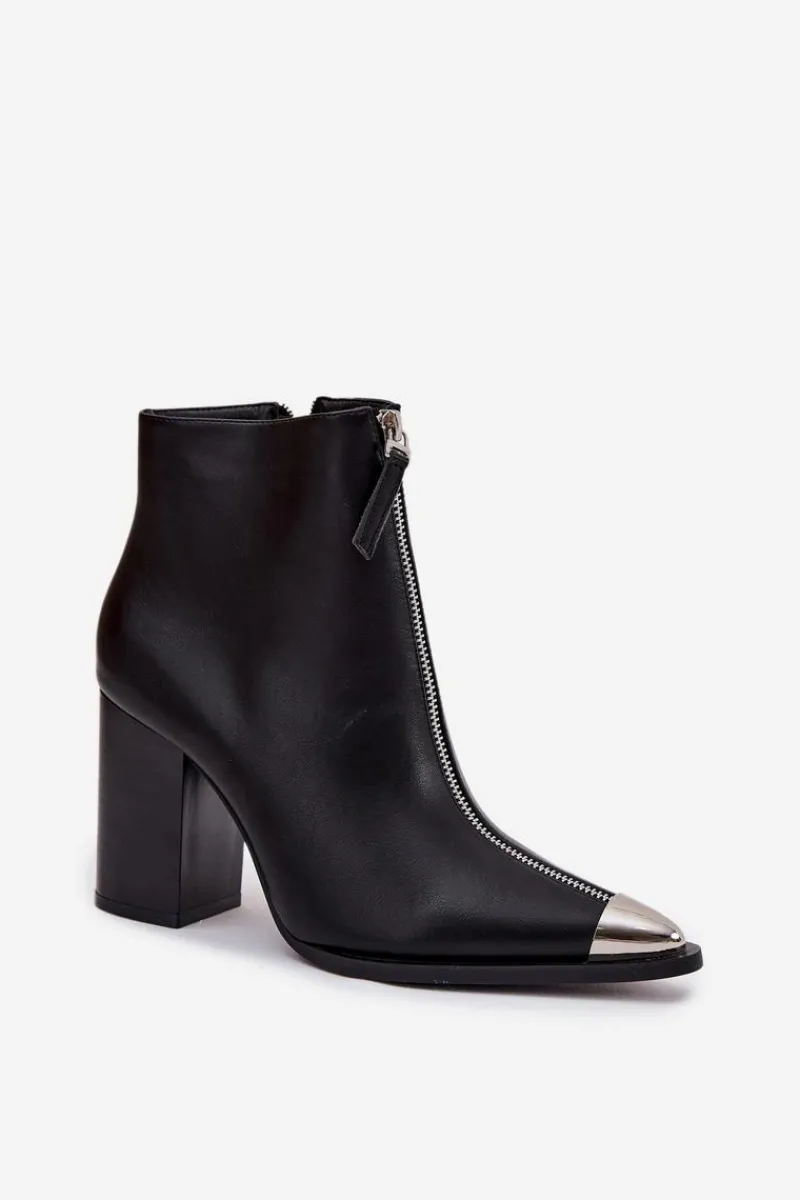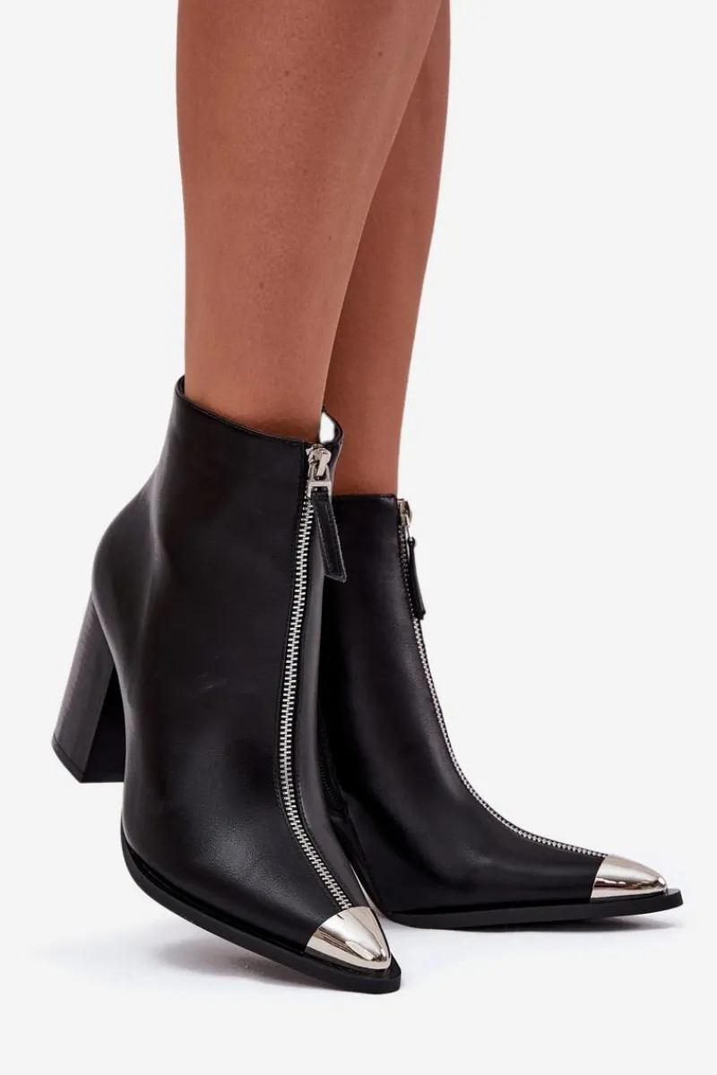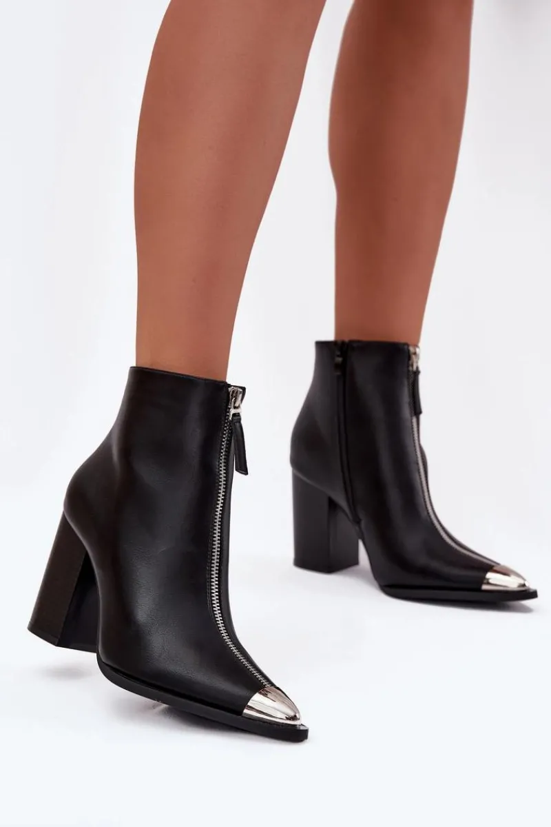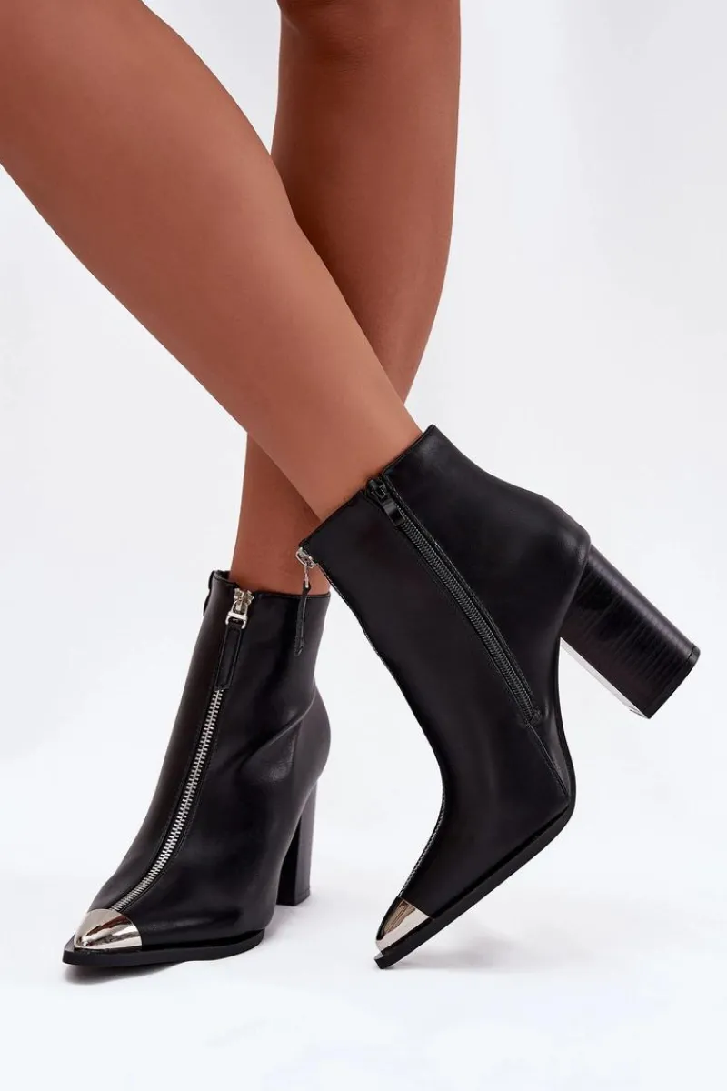New Boto Botki Damskie Na Słupku Z Ozdobnym Zamkiem Czarne Wiviane