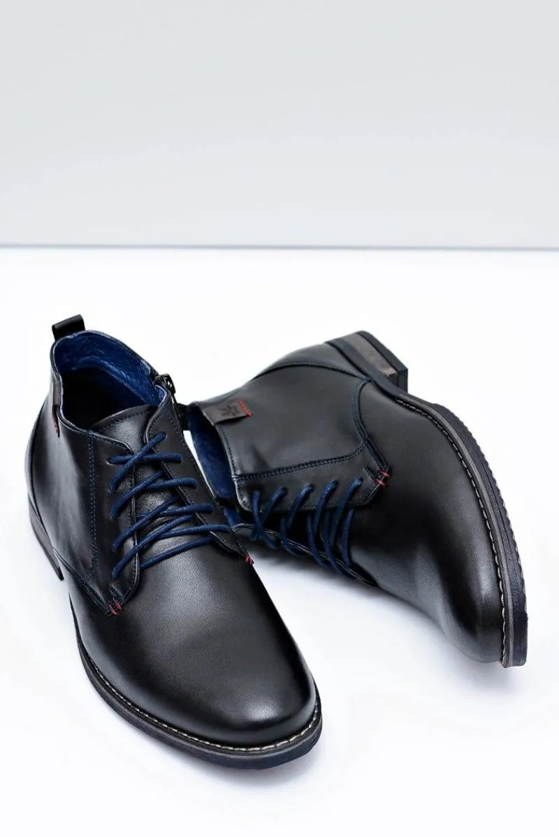 Wspaniałe, męskie ciepłe botki. To nie sen, tylko nasza wspaniała oferta! Męskie skórzane botki, wykonane z najwyższej jakości skóry naturalnej w połączeniu z delikatnym kocem obuwniczym to gwarancja komfortu podczas długich spacerów. Łatwe zakładanie, ułatwi wszyty na boku zamek, natomiast dopasowanie do stopy zagwarantowane jest dzięki solidnemu sznurowaniu. Nie czekaj dłużej i sprawdź już teraz! Większa rozmiarówka. Sugerujemy wybrać rozmiar mniejszy niż zazwyczaj.