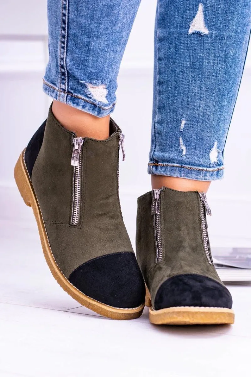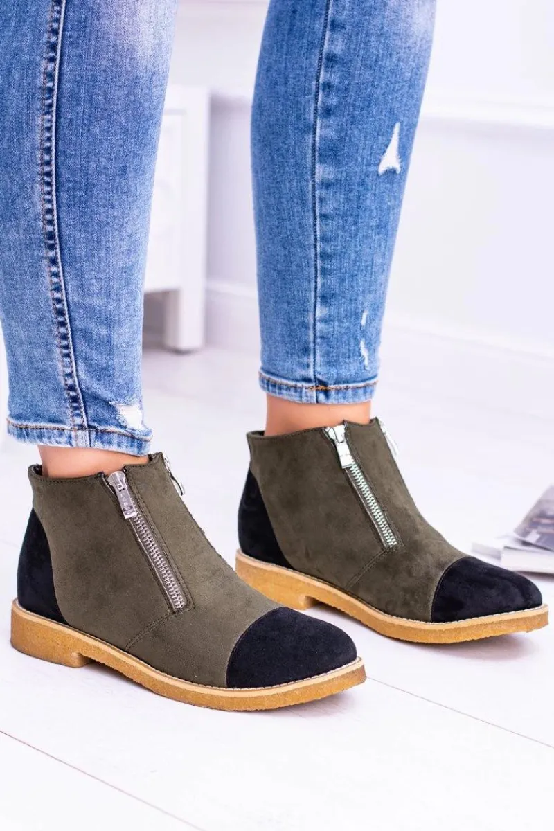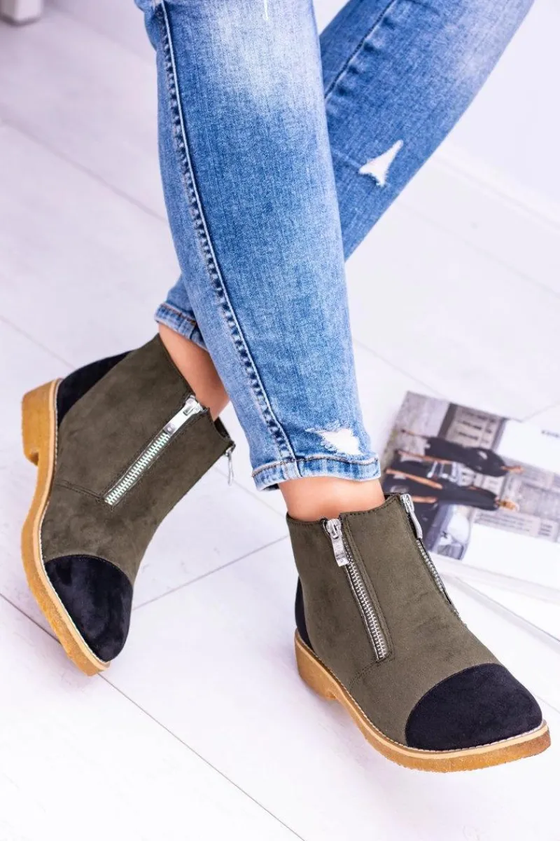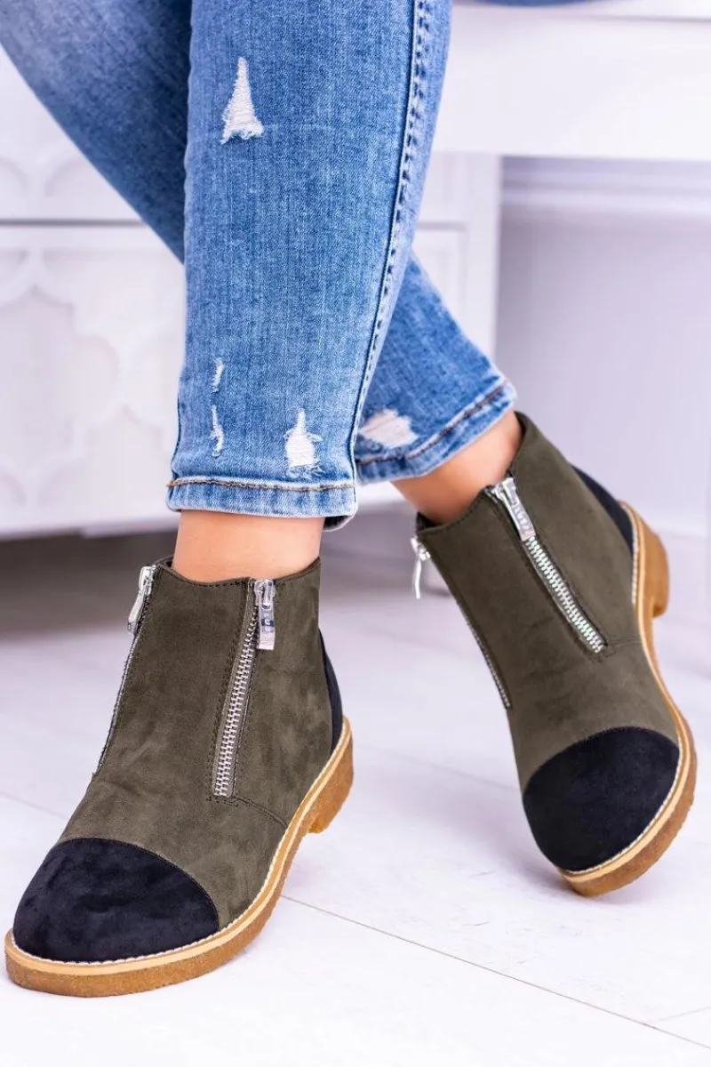 New Boto Lu Boo Zamszowe Oliwkowe Botki Z Suwakami Inez