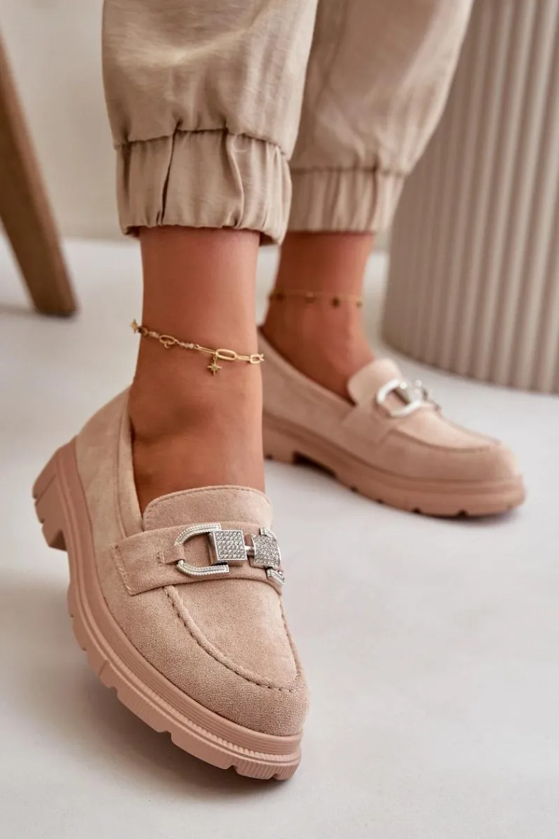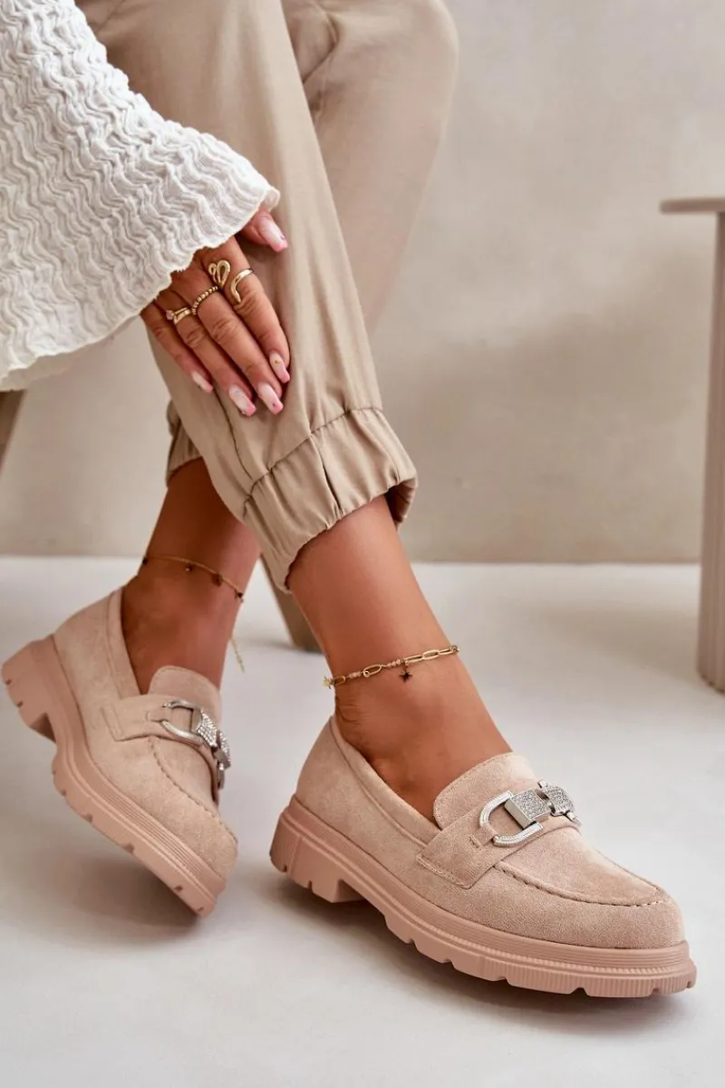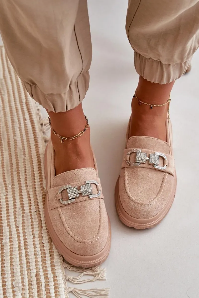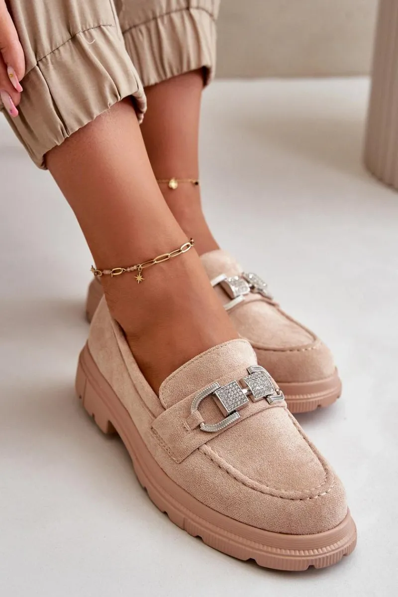 Damskie mokasyny wykonane z eko zamszu, które łączą styl i wygodę. Klasyczny fason wzbogacony o dekoracyjny pasek z przodu, który dodaje elegancji i unikalnego charakteru. Idealne zarówno do casualowych, jak i bardziej formalnych stylizacji, te mokasyny są świetnym wyborem na co dzień. Przy wyborze rozmiaru prosimy sugerować się tabelą rozmiarów.
