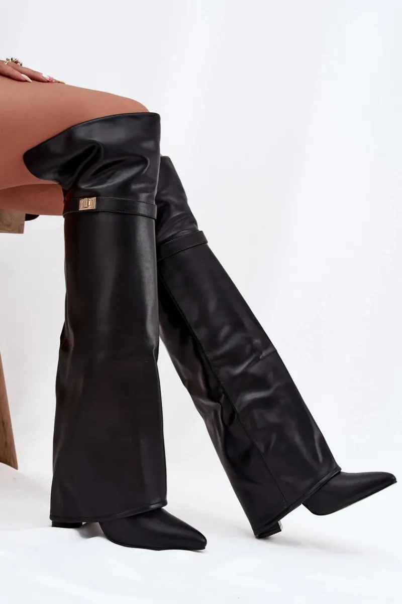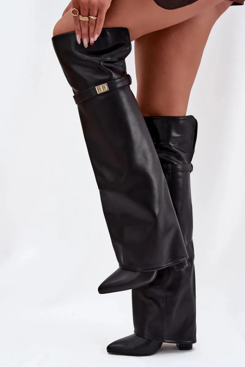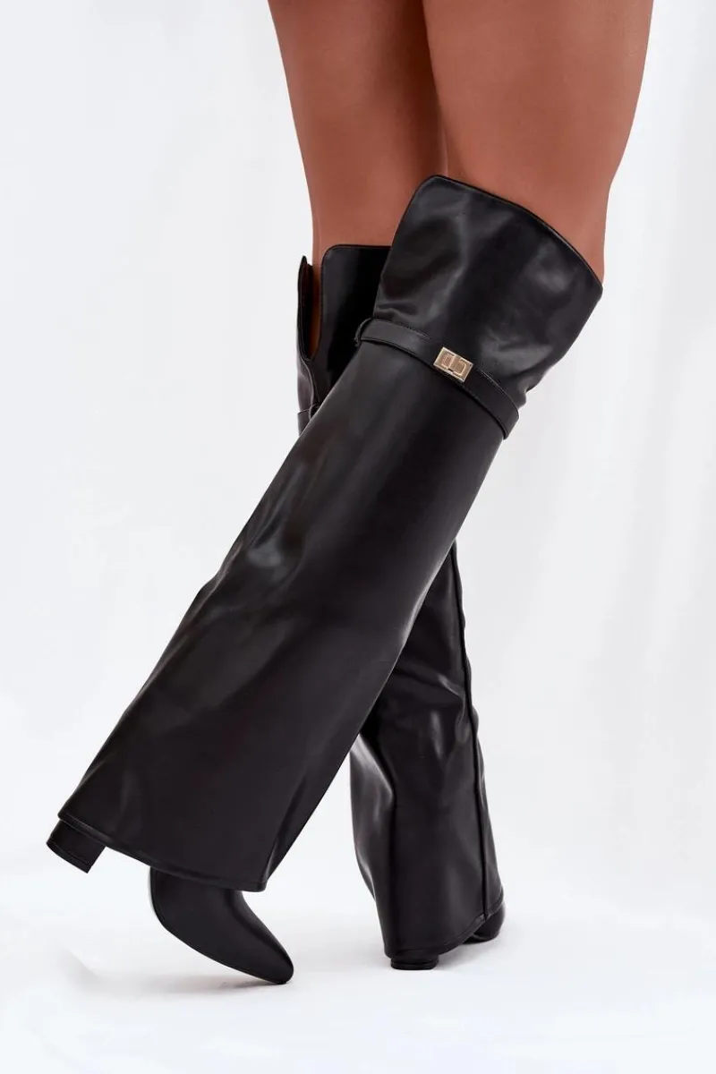 Kozaki damskie z wywiniętą cholewką to prawdziwy hit nadchodzącego sezonu jesienno-zimowego! Cholewka sięga za kolano i nachodzi na obcas dodaje im niepowtarzalnego charakteru. Osadzone na stabilnym obcasie typu słupek, zapewniają komfort i elegancję, a ocieplenie gwarantuje ciepło w chłodniejsze dni. Wsuwane i z noskami w szpic, łączą w sobie wygodę z modnym, kobiecym stylem – idealne do tworzenia efektownych, zimowych stylizacji. Przy wyborze rozmiaru prosimy sugerować się tabelą rozmiarów.