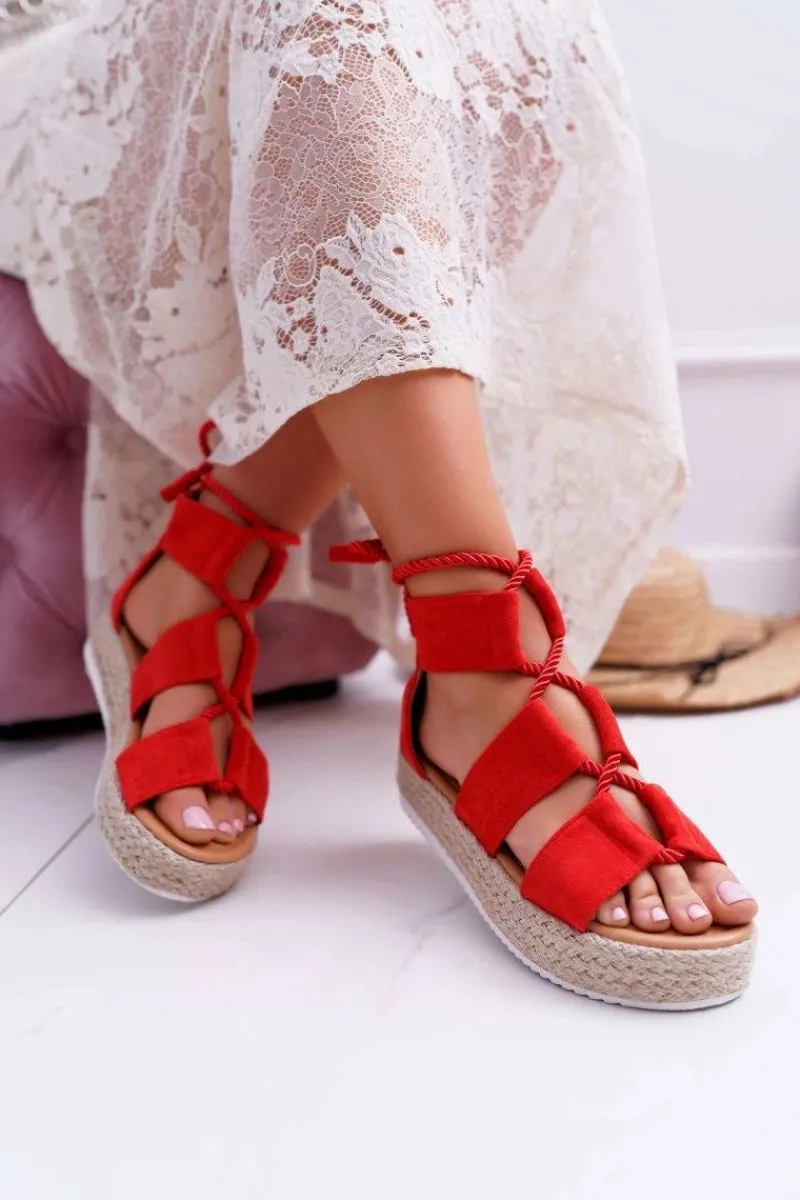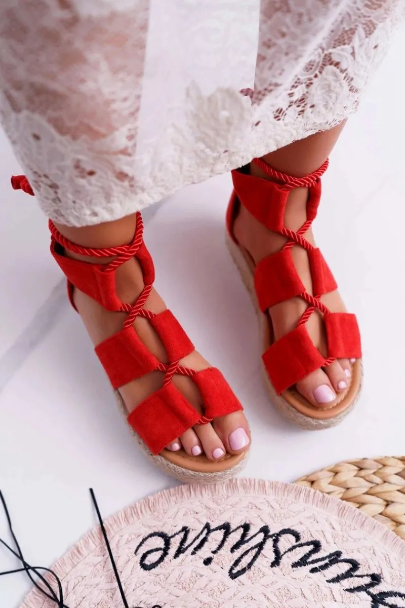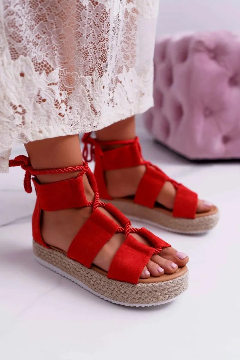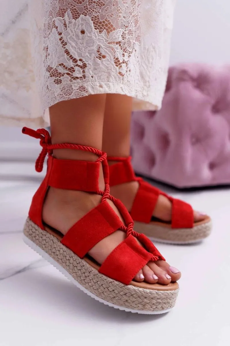 New Boto Sandały Damskie na Platformie Zamszowe Czerwone Ergola