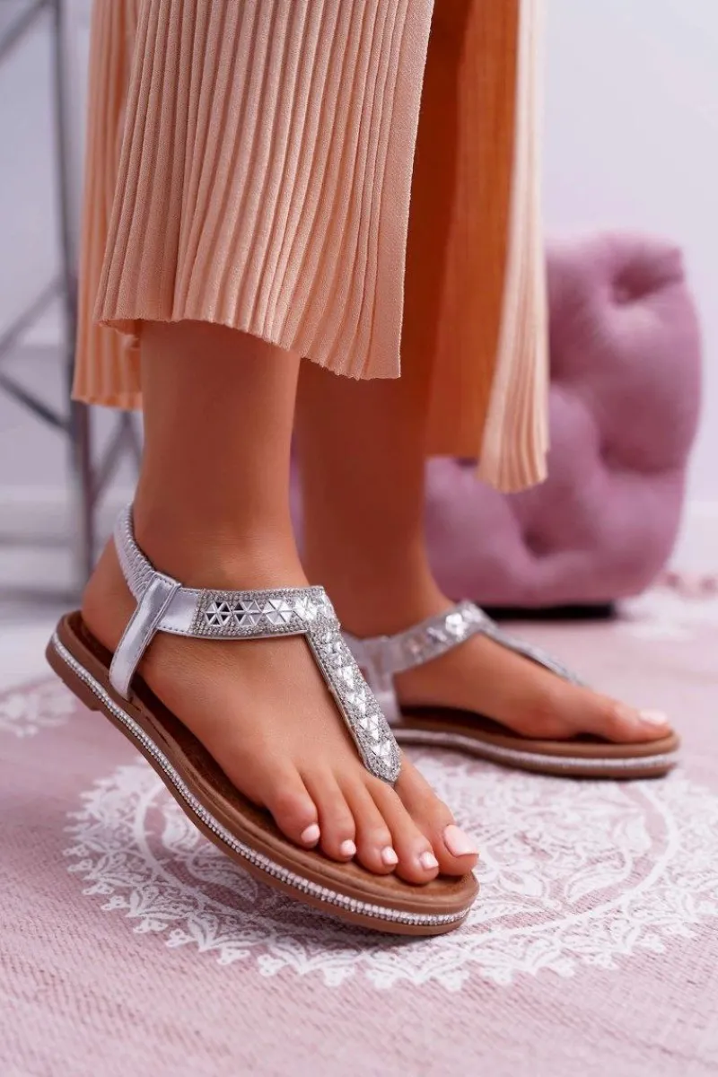 New Boto Sandały Damskie Płaskie Wsuwane Z Cyrkoniami Srebrne Mabellena