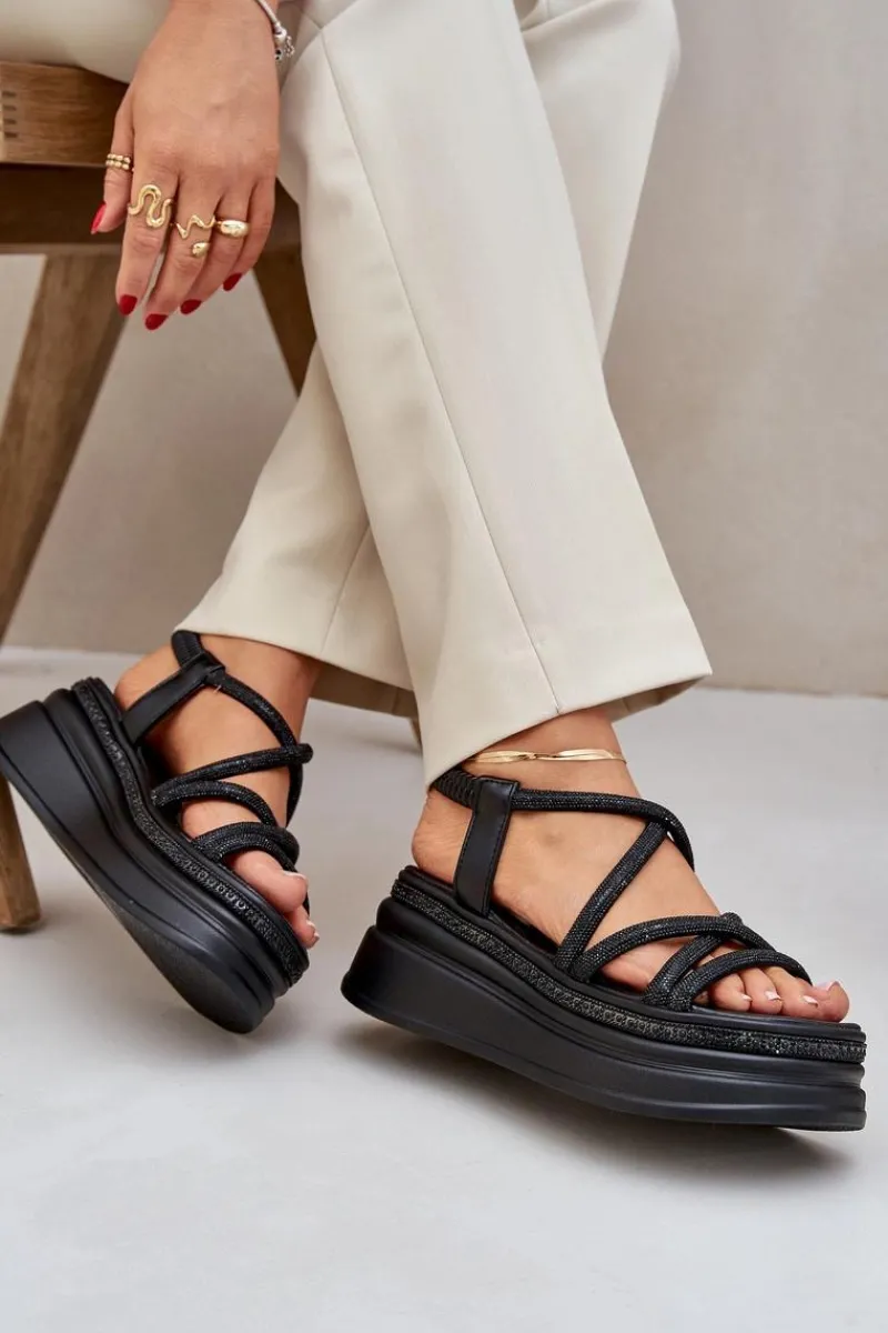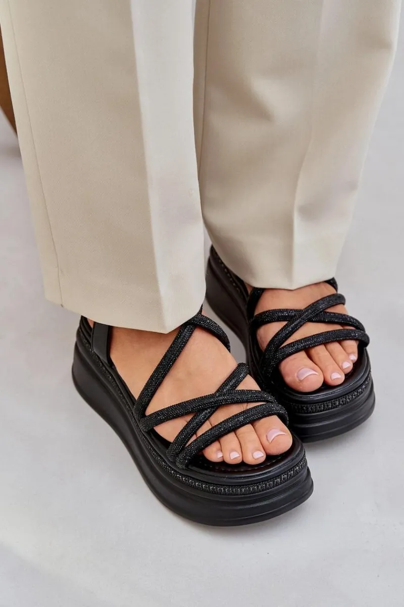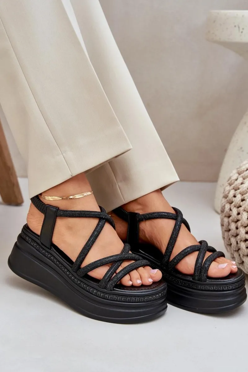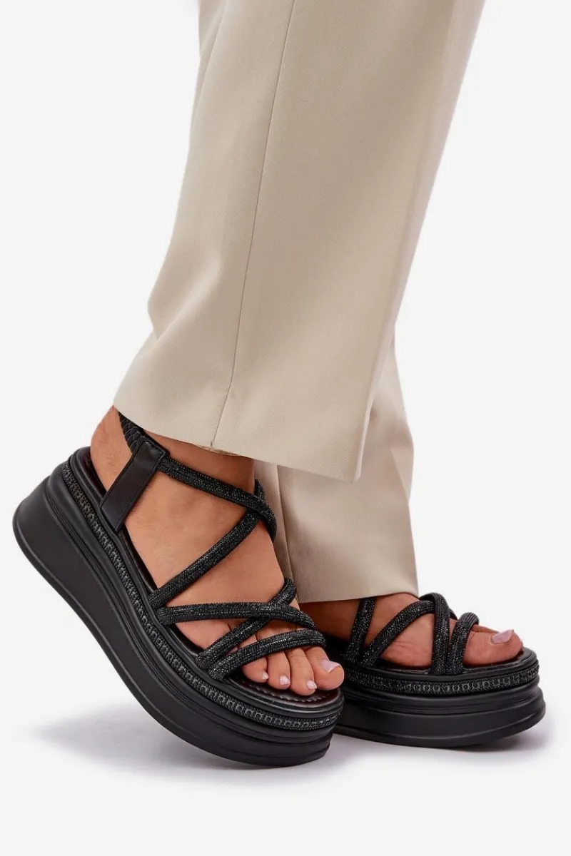 Sandały damskie na masywnej platformie to stylowa propozycja na letnie dni. Ozdobne, przeplatające się paseczki nadają im blasku, a masywna platforma zapewnia stabilność i komfort przez cały dzień. Miękka wkładka gwarantuje wygodę, sprawiając, że te sandały będą doskonałym wyborem na letnie dni, idealnie komponując się z casualowymi i wakacyjnymi stylizacjami. Przy wyborze rozmiaru prosimy sugerować się tabelą rozmiarów.