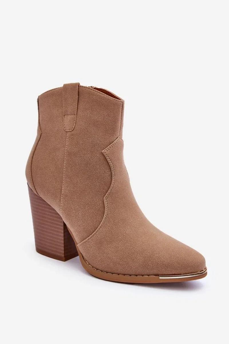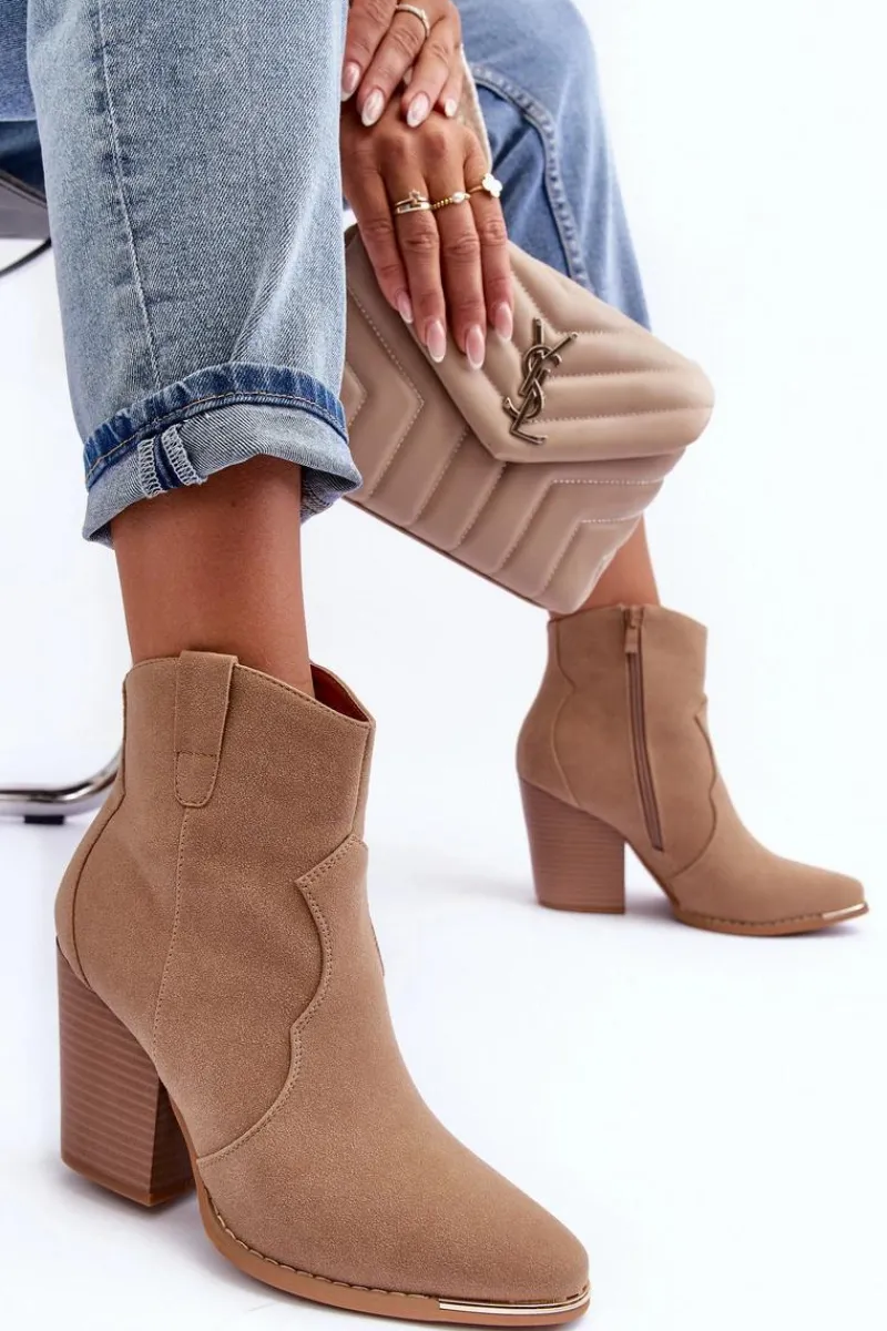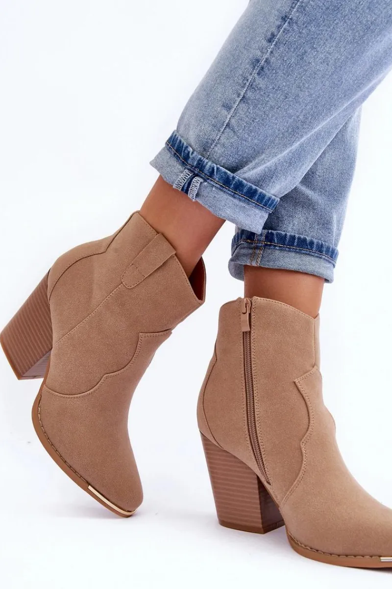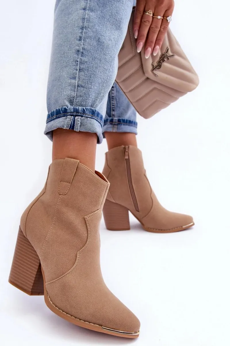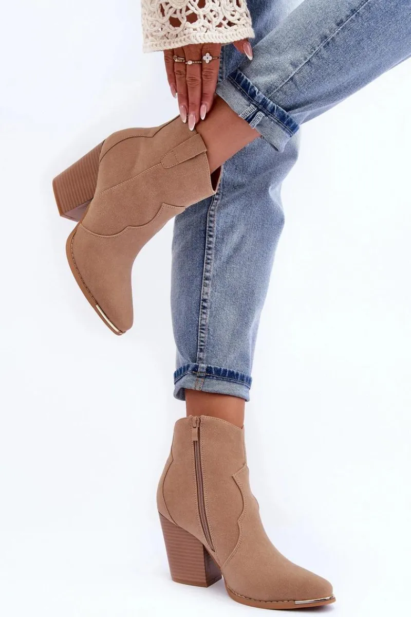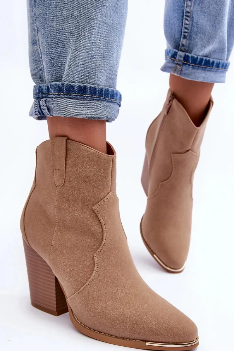 New Boto Skórzane Botki Kowbojki Na Obcasie Beżowe Lotoune