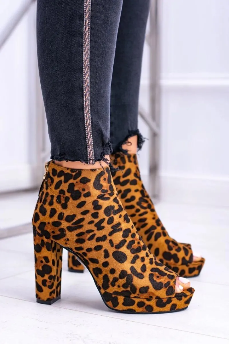 New Damskie Botki Na Słupku Odkryte Palce Panterka Temira Damskie Botki Na Słupku|Botki Zamszowe