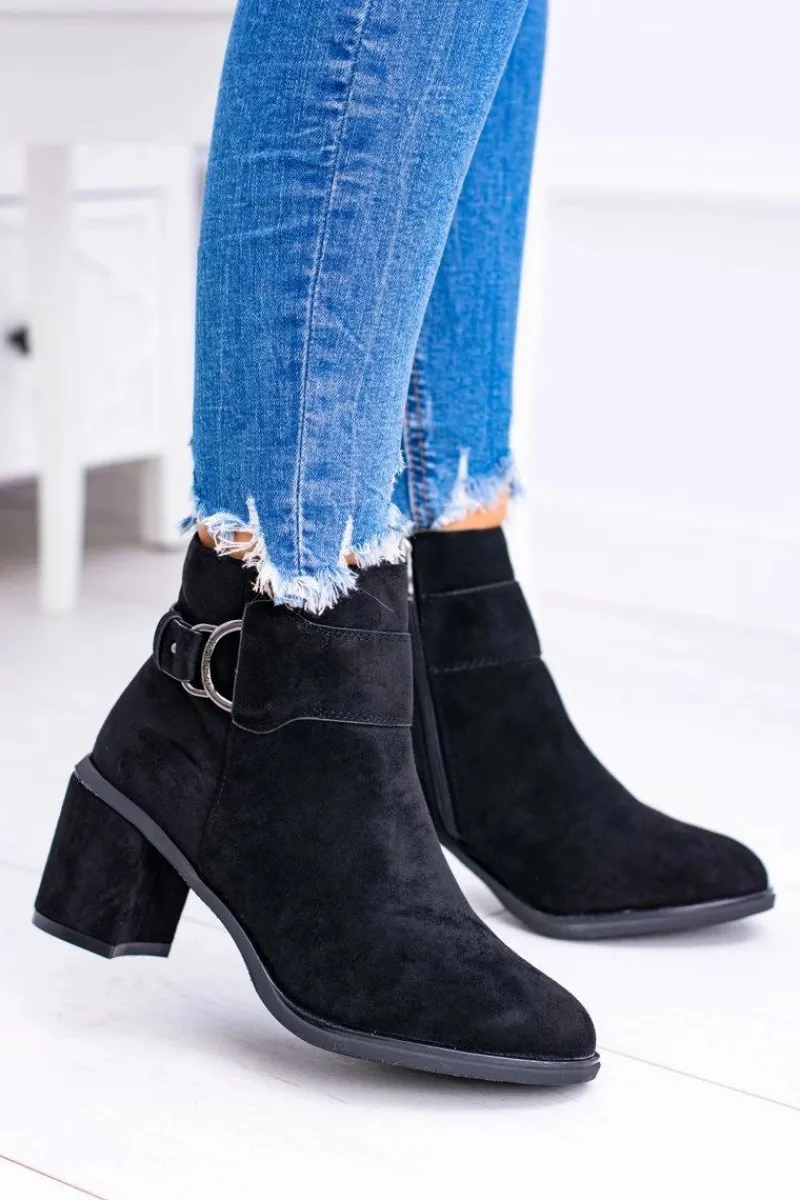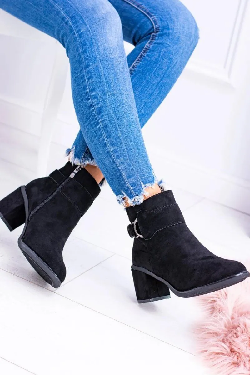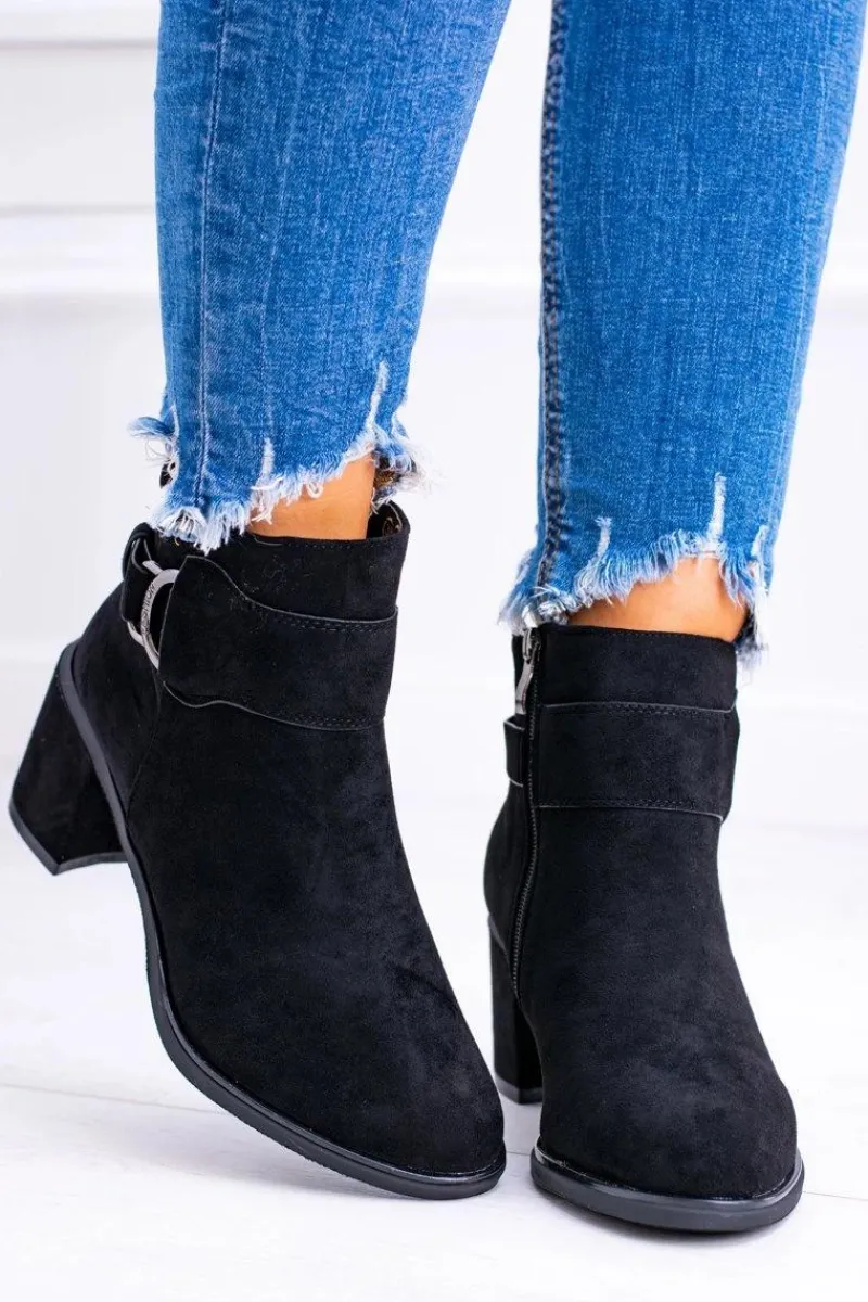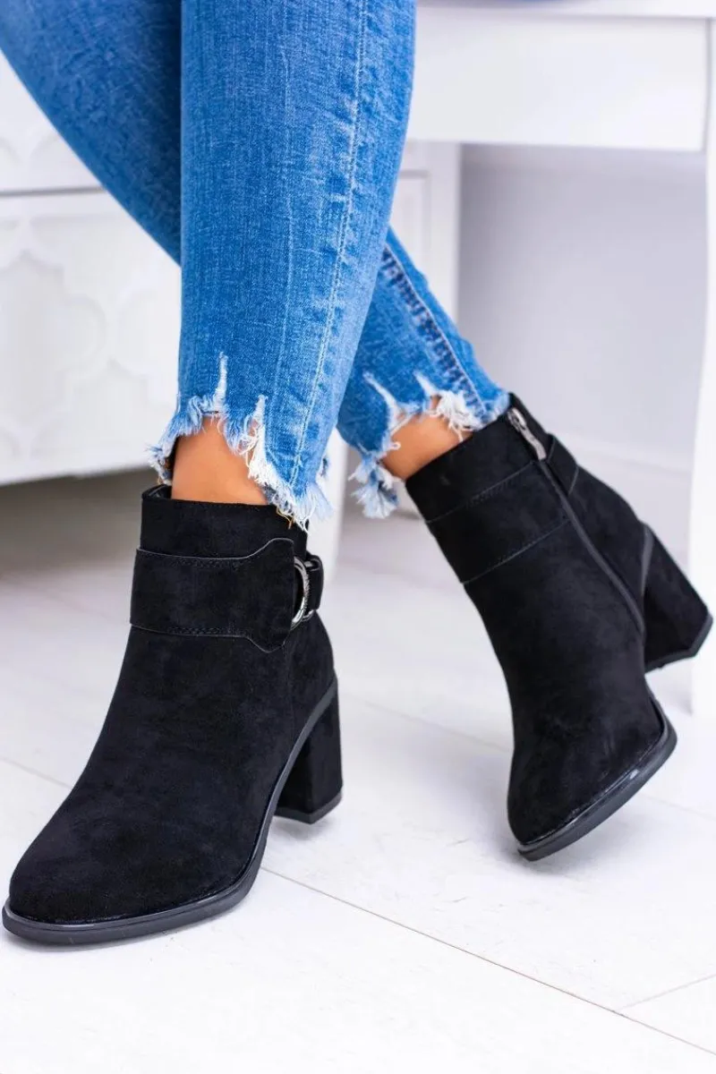 Niezwykle eleganckie botki na słupku! Wykonane z delikatnego w dotyku ekozamszu. W najnowsze trendy wpisują się dzięki modnemu wzornictwu oraz delikatnej klamrze na boku. Świetne na każdą okazję! Idealne dopasowane do stopy, zapinane na zamek. Sprawdź całą kolekcję naszych botków.