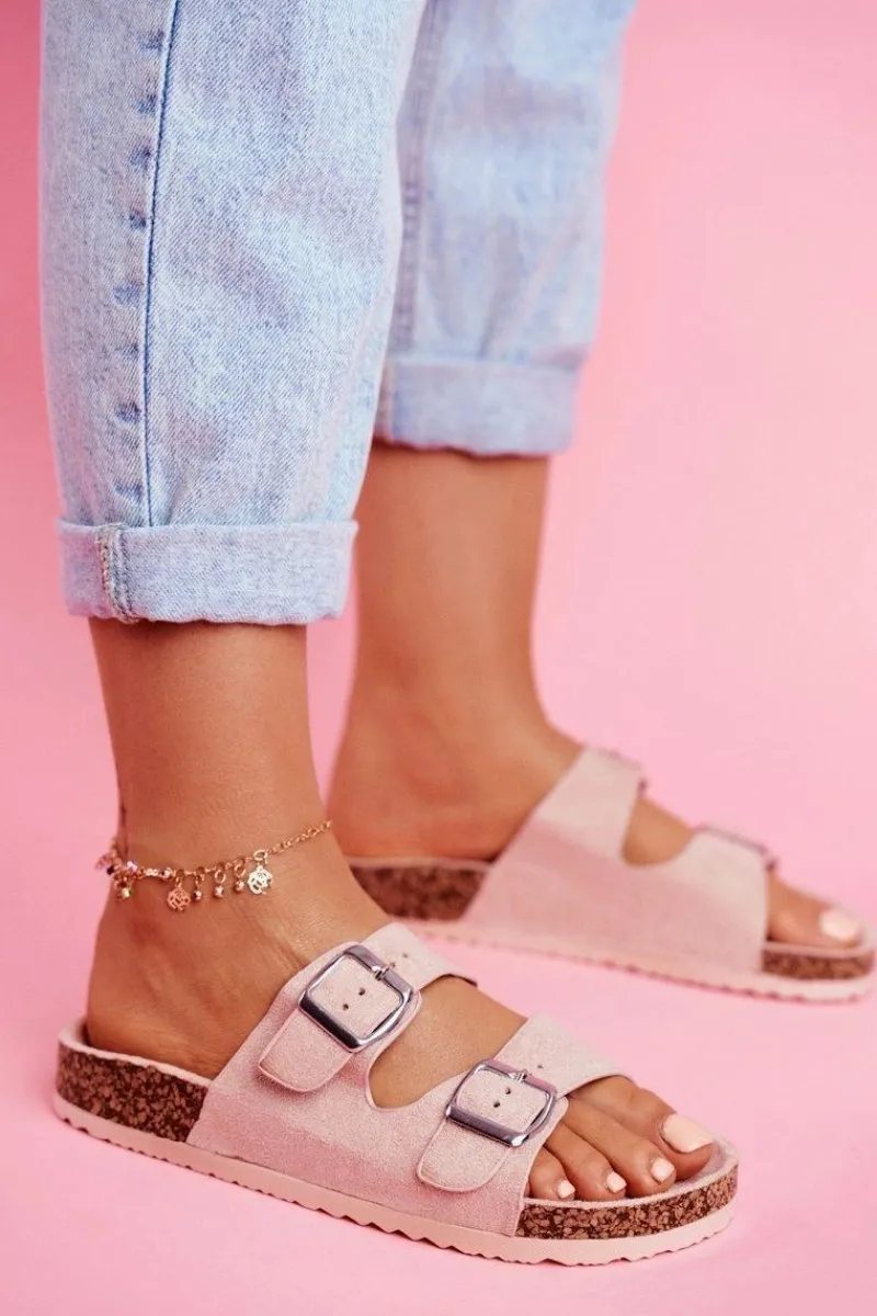 New Damskie Klapki Na Korku Z Klamrami Różowe Si Senor Damskie Klapki Korkowe|Klapki Damskie Klasyczne