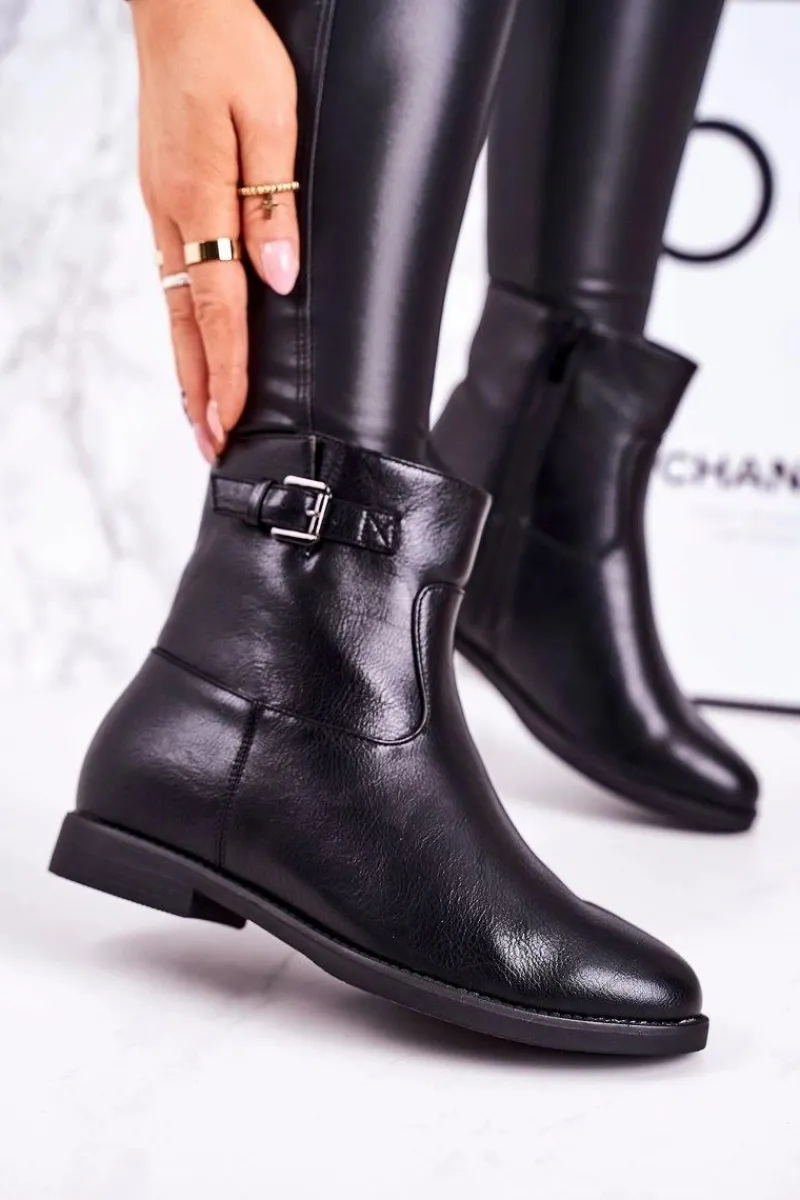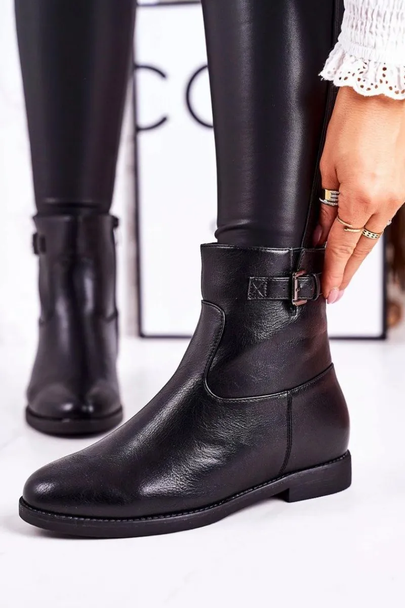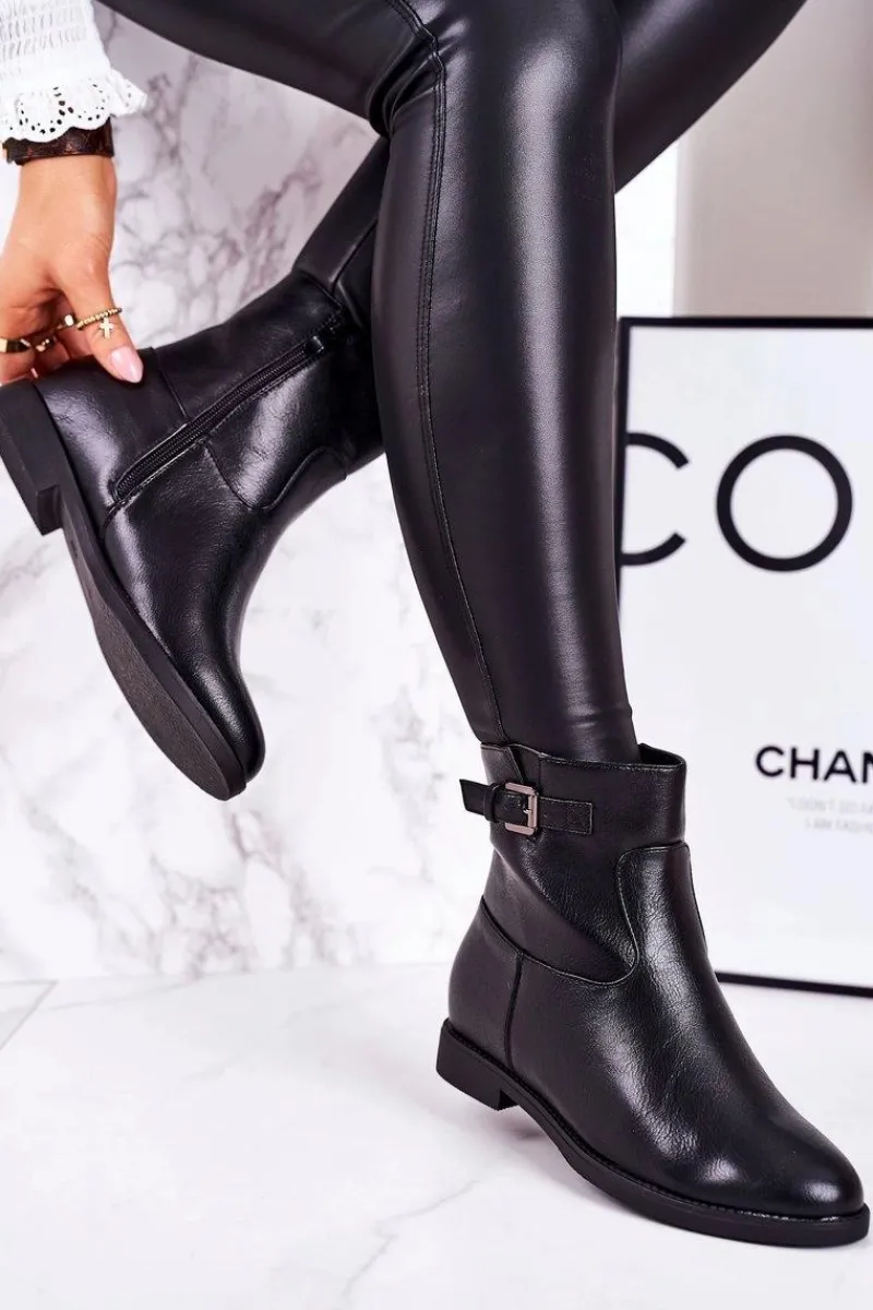 New Damskie Ocieplane Botki Z Klamrą Czarne Halfway Damskie Czarne Botki|Botki Zimowe Damskie