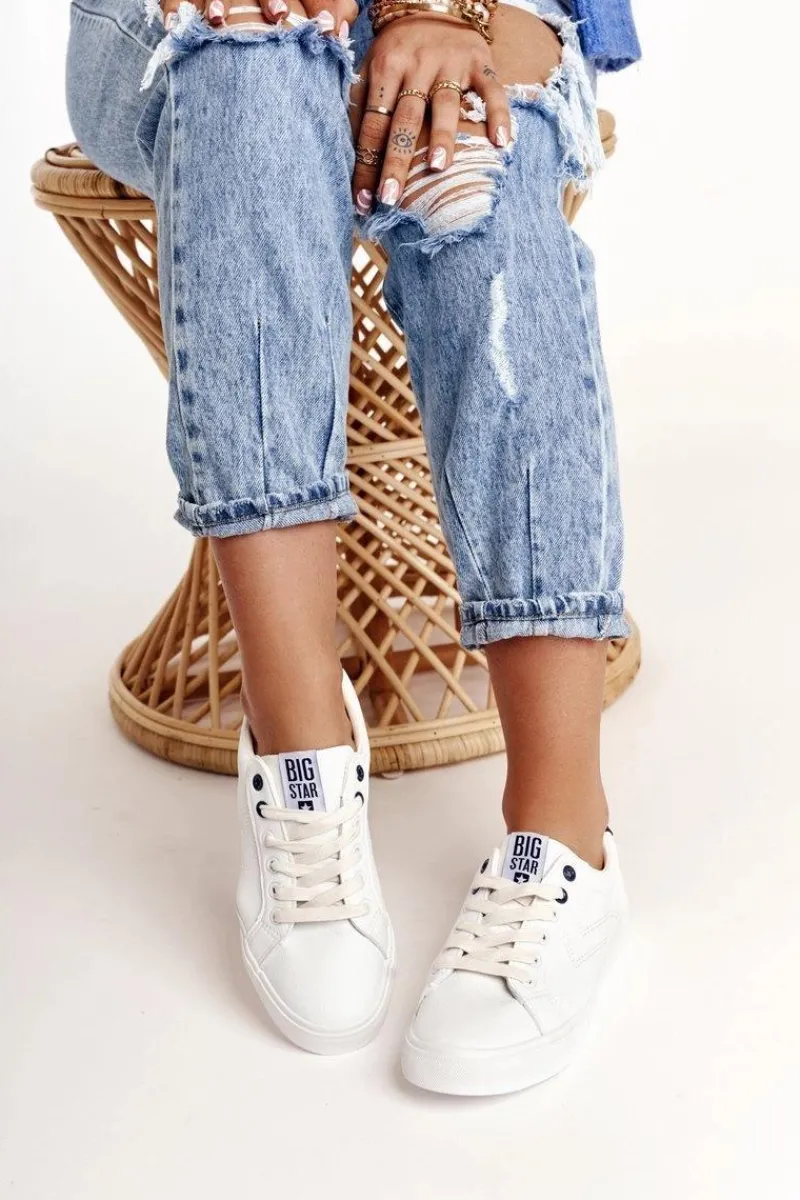 Damskie tenisówki polskiej marki BIG STAR. Klasyczna forma pasuje do wielu stylizacji. Buty dobrze dopasowują się do kształtu stopy, posiadają miękką, materiałową wkładkę. Wykonane są z wysokiej jakości eko skóry. Koniecznie sprawdź całą naszą kolekcję butów BIG STAR. Przy wyborze rozmiaru prosimy sugerować się tabelą rozmiarów.