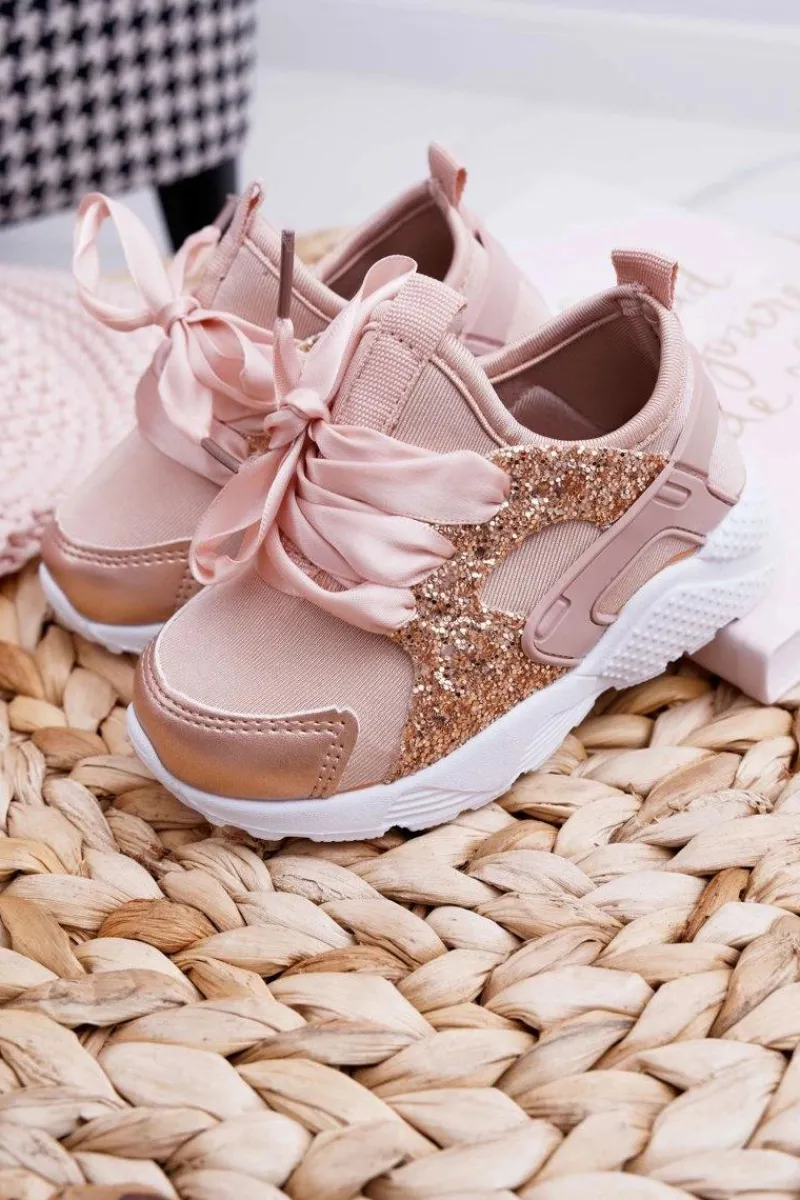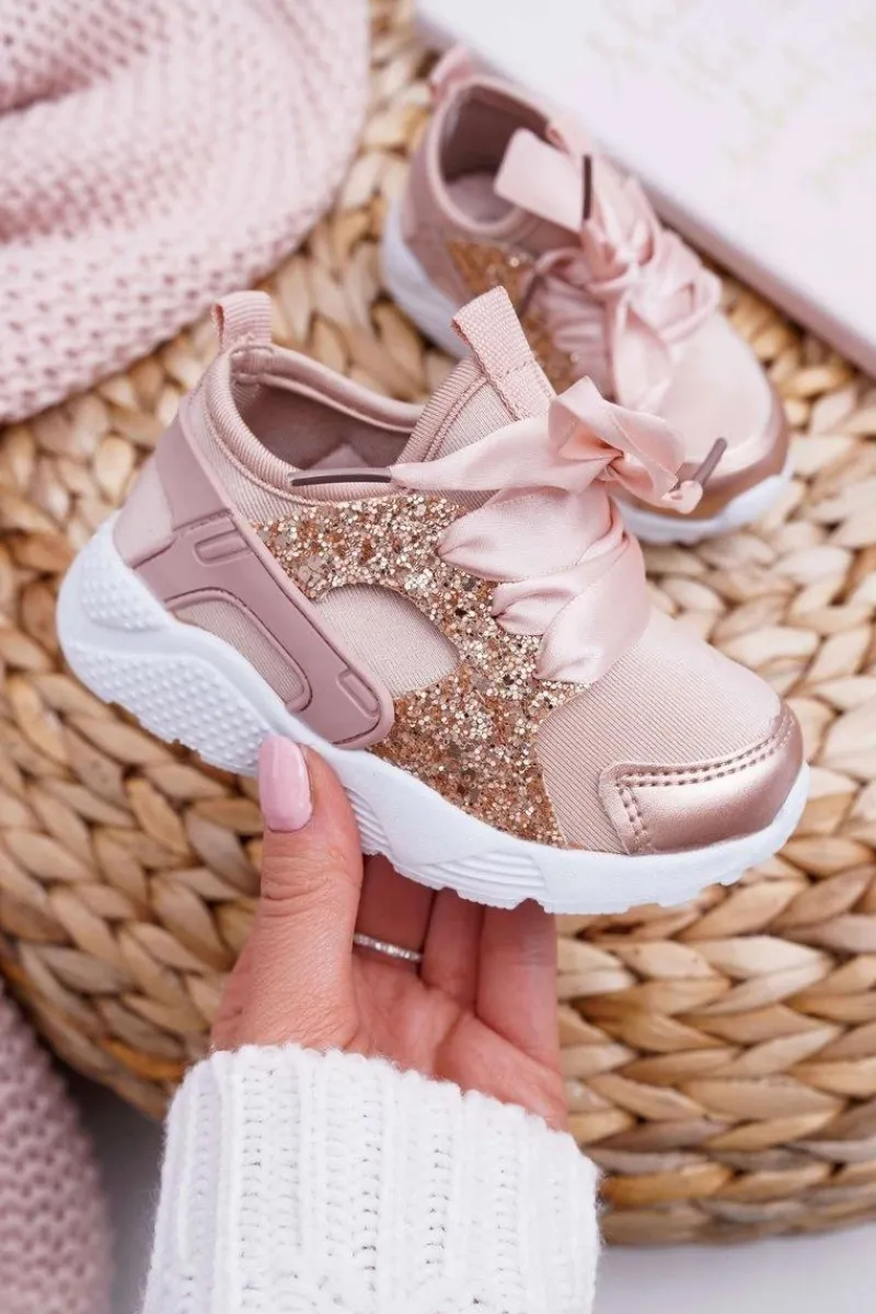 Lekkie i wygodne buty sportowe, zdobione brokatową wstawką. Dodatkowym zdobieniem jest wstążka, która imituje zasznurowane buty. Wsuwane buciki ze stabilną podeszwą. Dostępne w kilku kolorach. Przy wyborze rozmiaru prosimy sugerować się tabelą rozmiarów dostępną po najechaniu bądź kliknięciu na dany rozmiar.