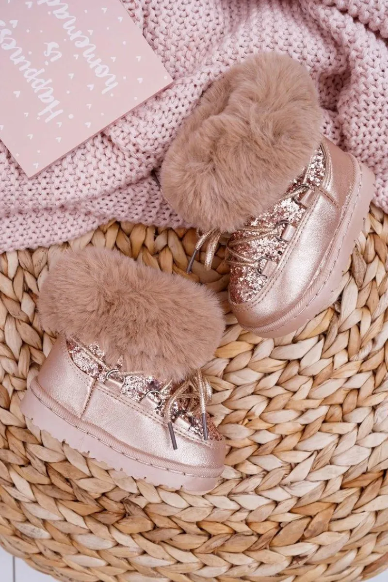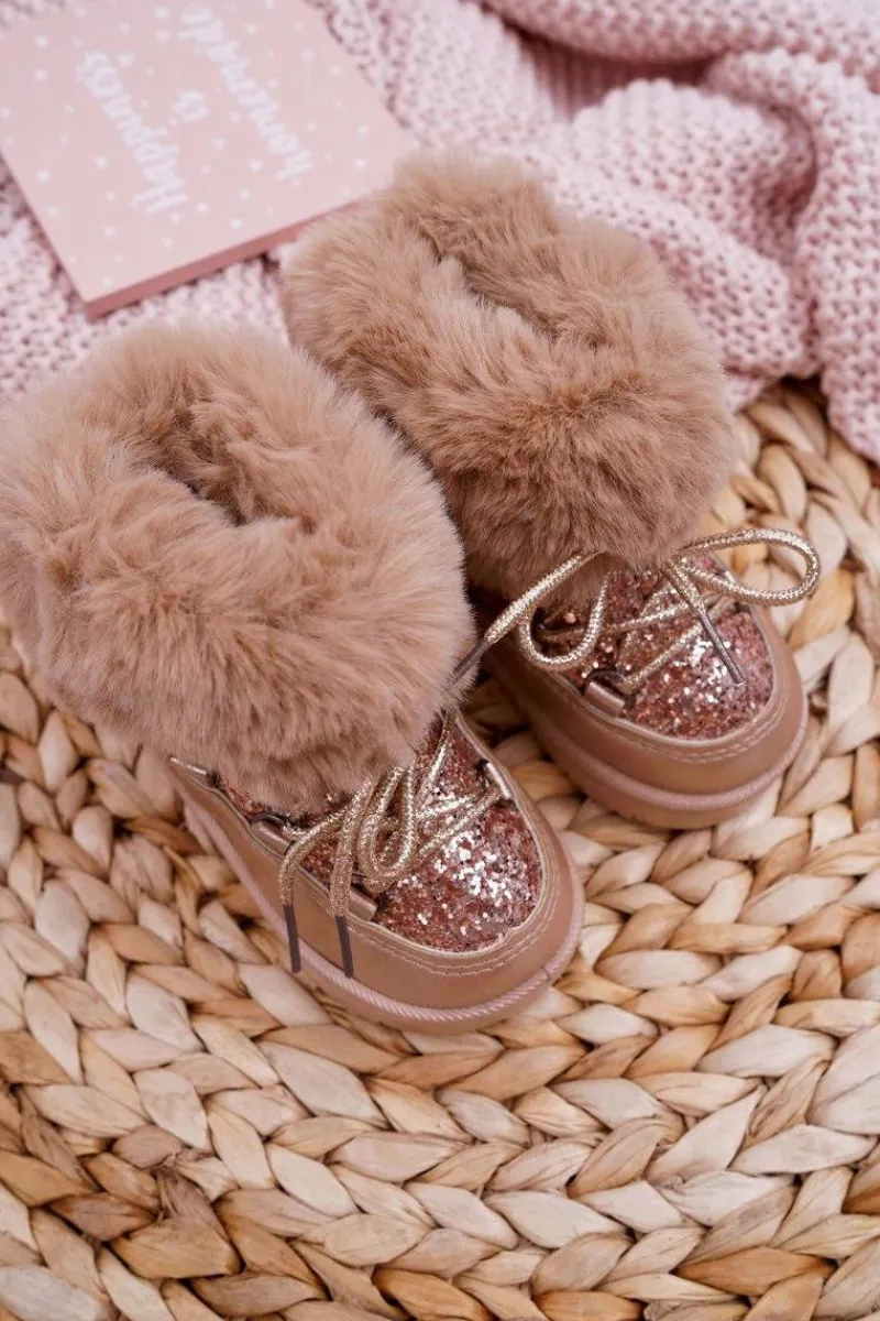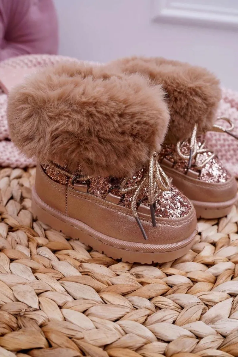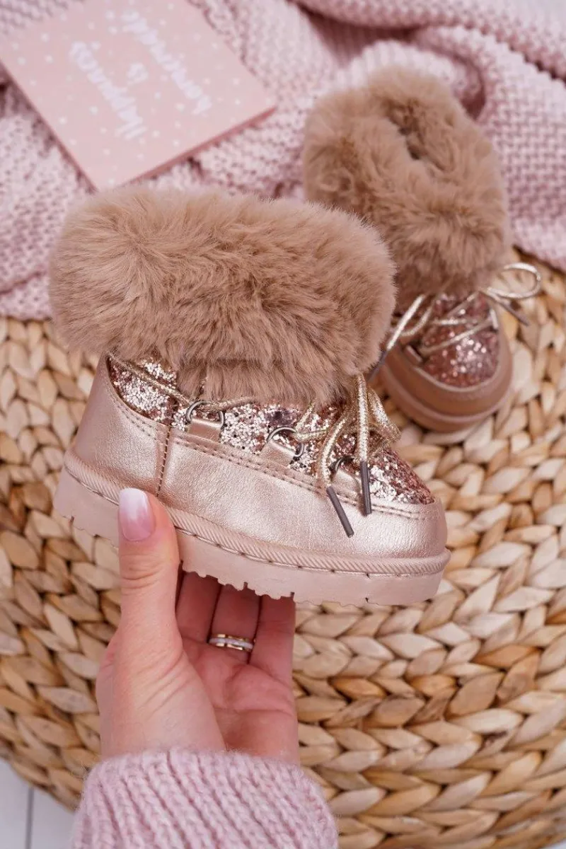 New Dziecięce Ocieplane Botki Śniegowce Z Futerkiem Złote Nicola Dzieci Dziewczęce