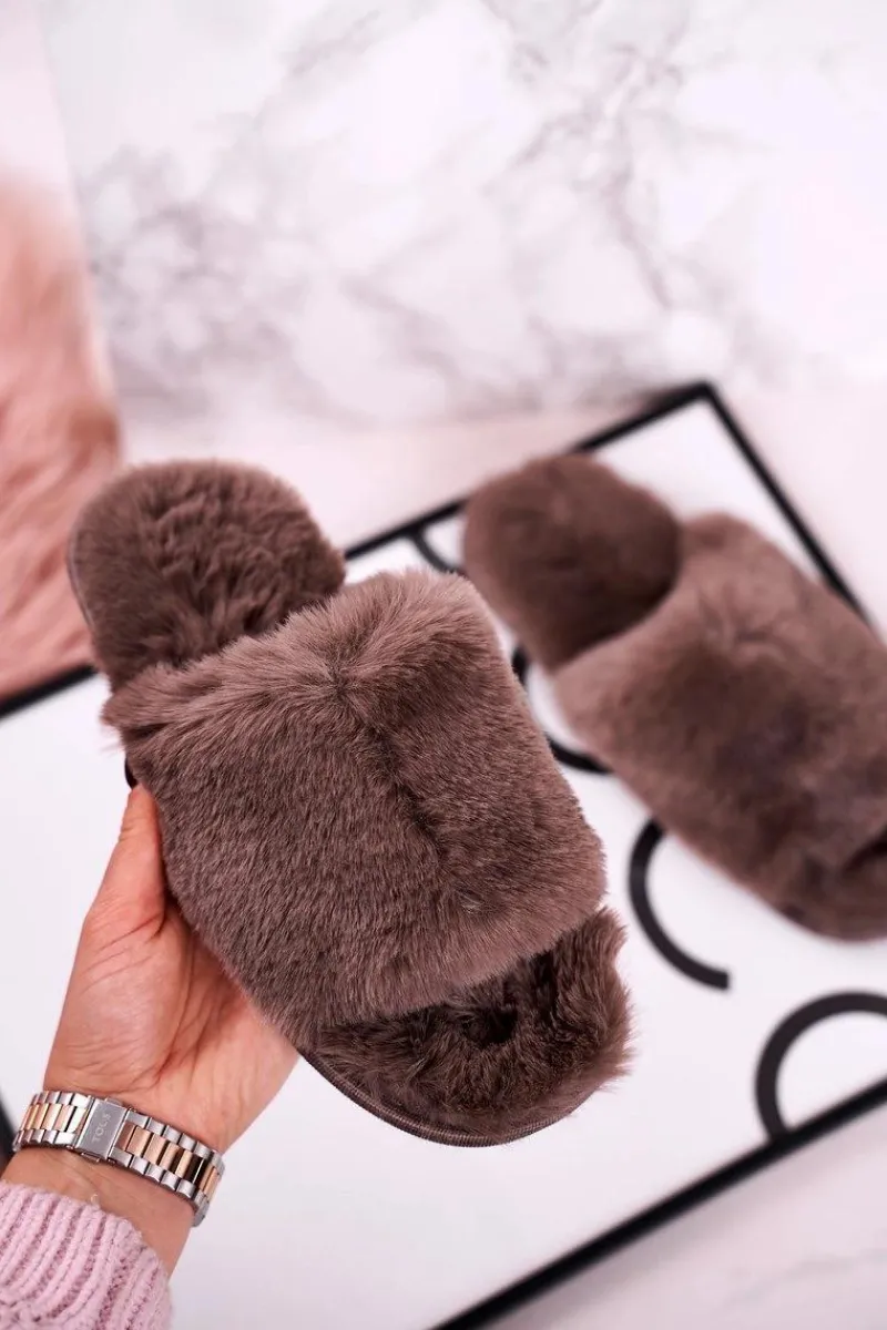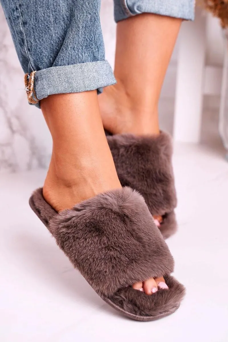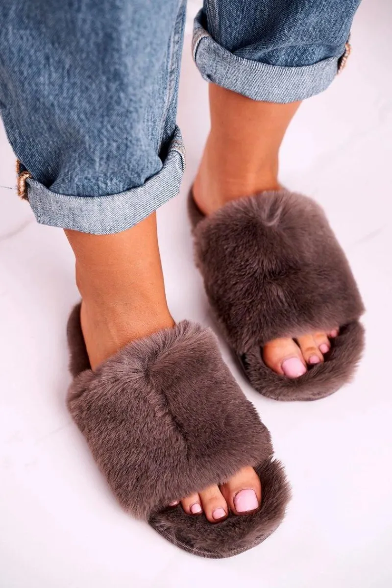 New Evento Damskie Klapki Papcie Futrzane Szare Sweet