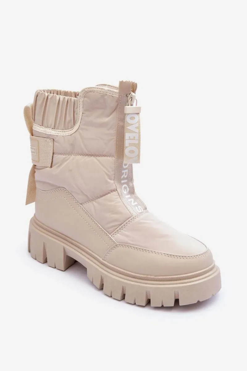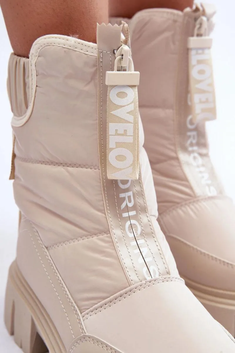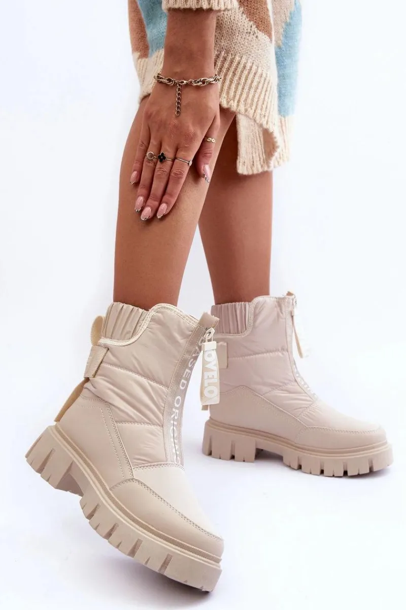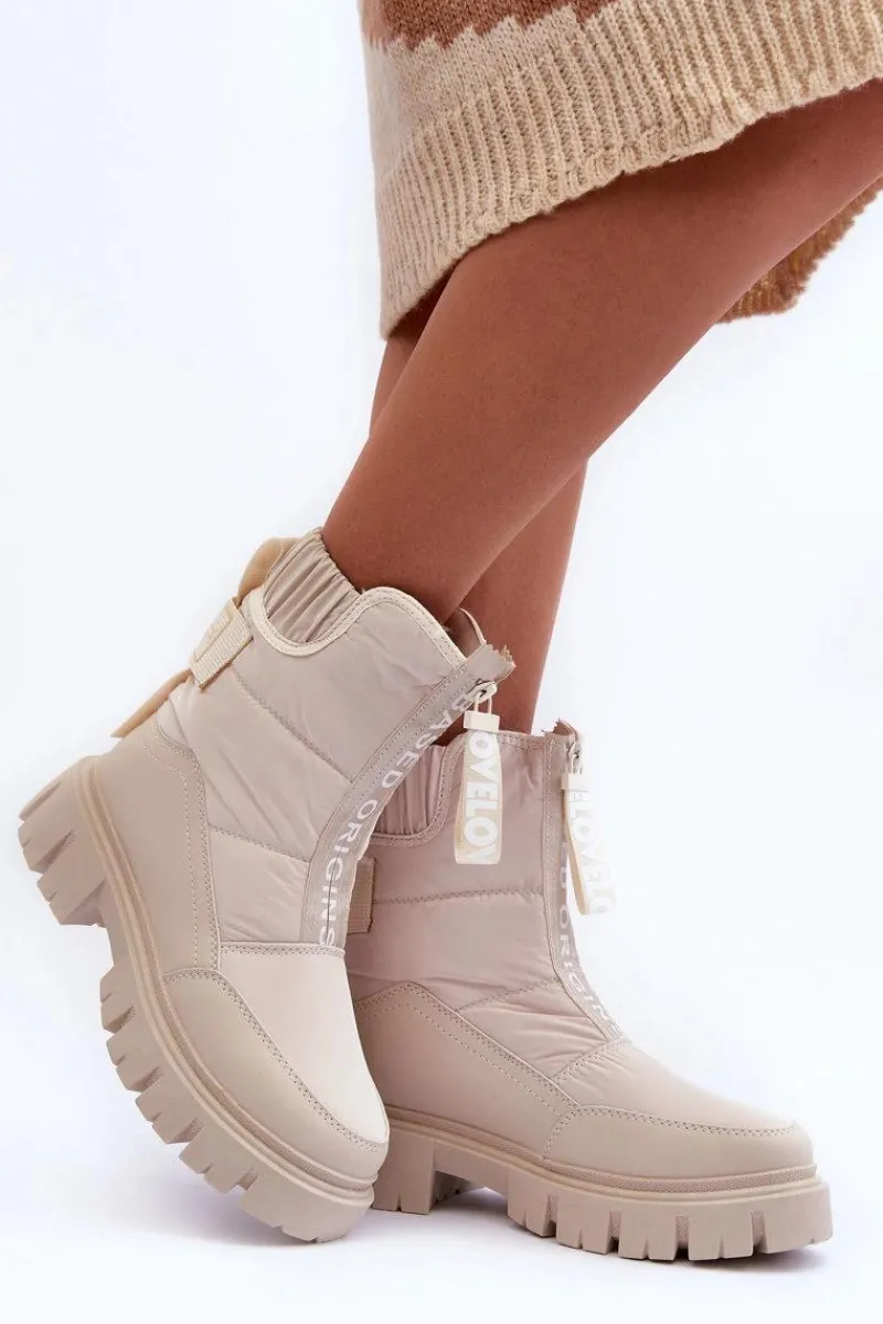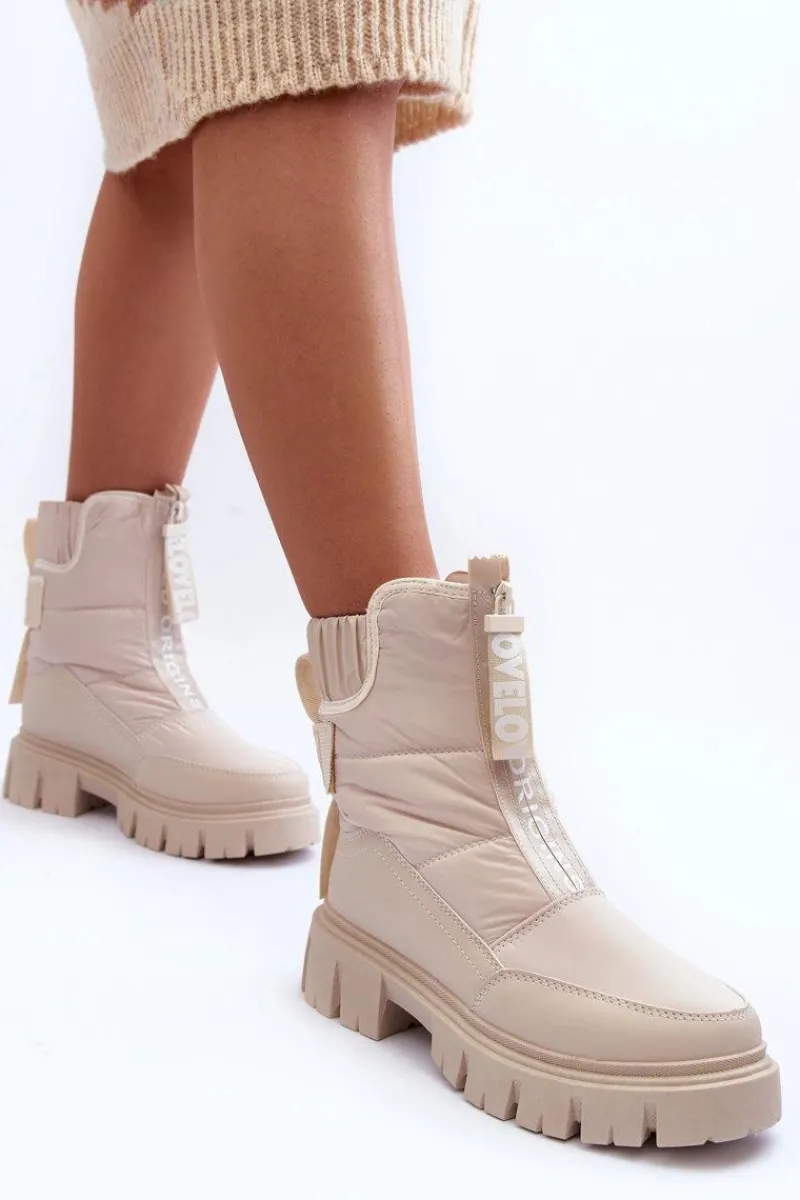 Modne, damskie śniegowce zostały wykonane z materiałów odpornych na wiatr czy mróz. Osadzone na płaskim obcasie i platformie. Model ten zapinany jest na suwak z przodu. Grube ocieplenie w postaci futerka zapewni ochronę przed zimnem. Przy wyborze rozmiaru prosimy sugerować się tabelą rozmiarów.
