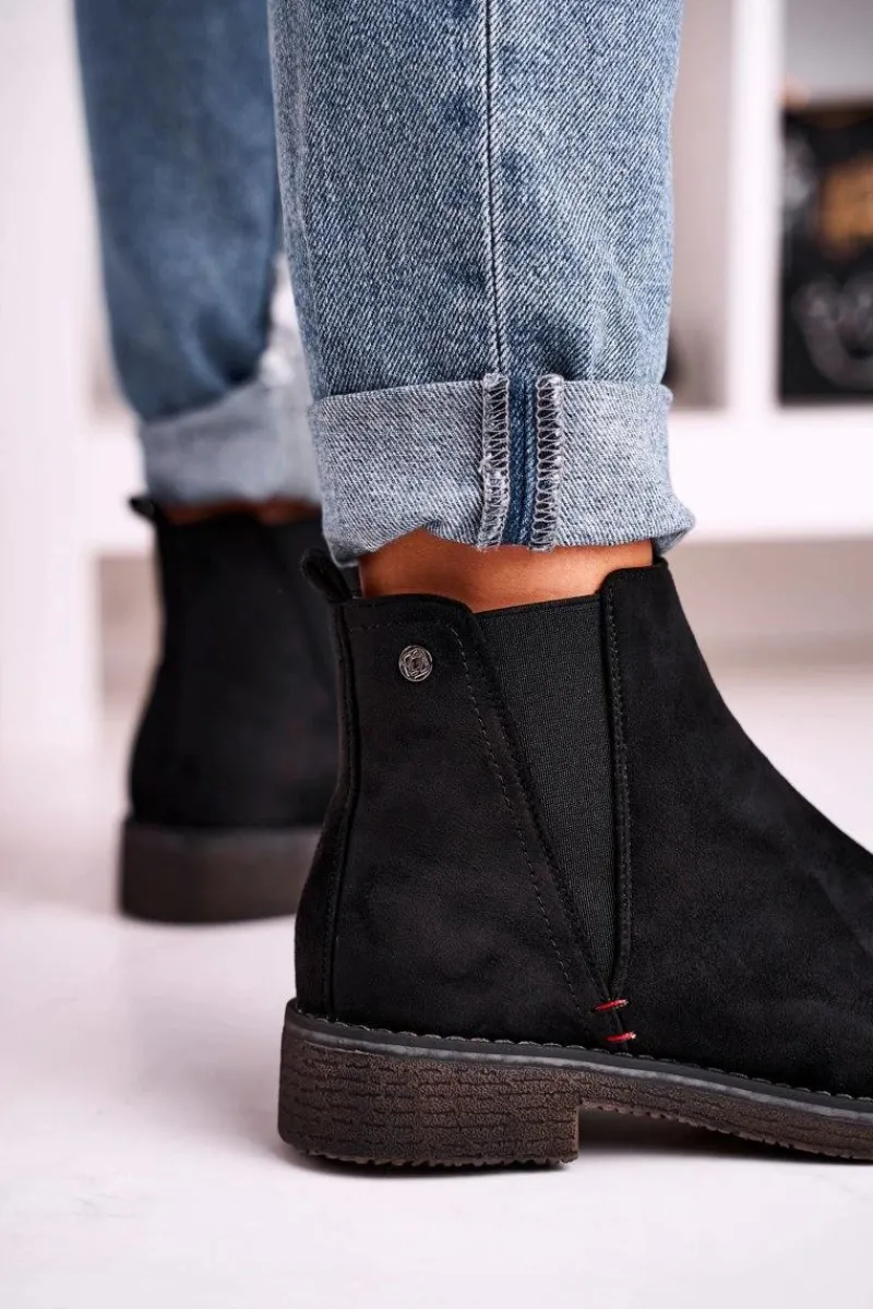 New Klasyczne Damskie Botki Sztyblety Zamszowe Czarne Heather Damskie Czarne Botki|Botki Zimowe Damskie