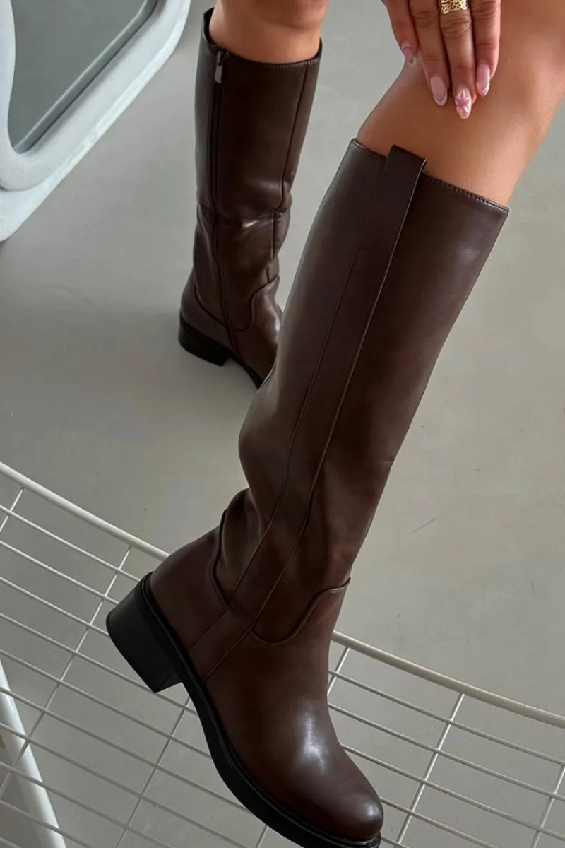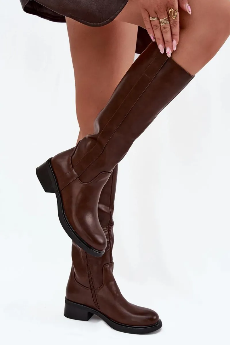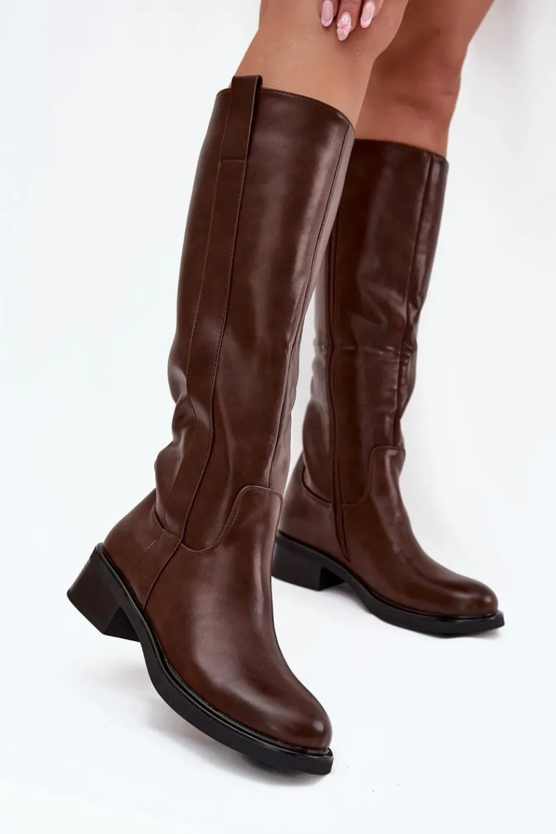 Kozaki oficerki damskie z eko skóry, osadzone na niskim obcasie w formie klocka, to połączenie klasyki z komfortem. Cholewka sięga przed kolano. Zapinane na zamek, co ułatwia ich zakładanie. Ocieplane kocem obuwniczym. Idealne do codziennych stylizacji, doskonale komponują się z sukienkami, spódnicami i spodniami. Przy wyborze rozmiaru prosimy sugerować się tabelą rozmiarów.