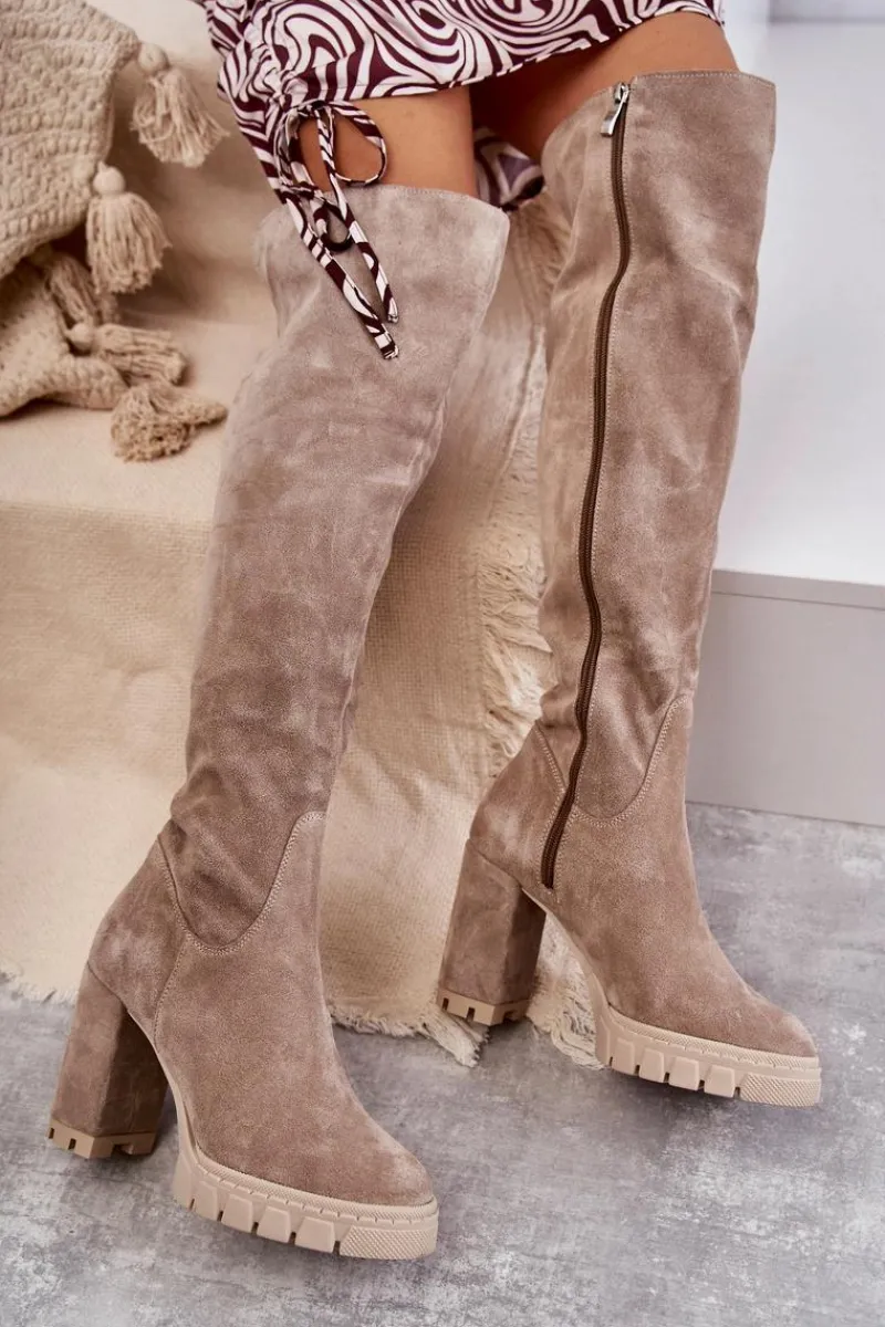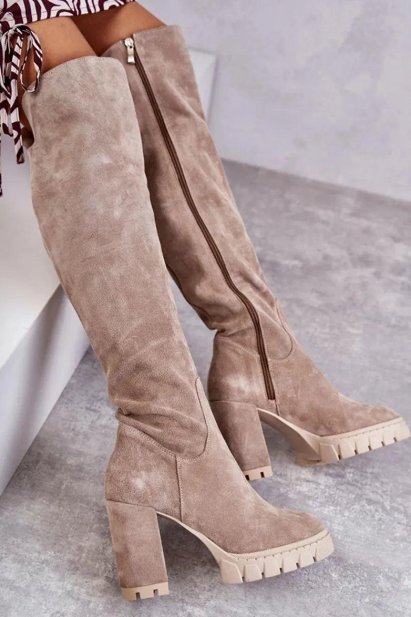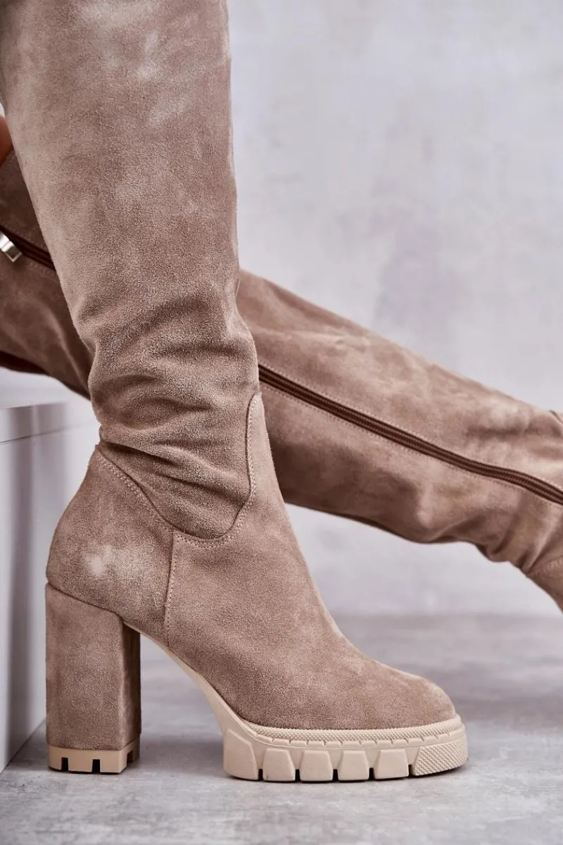 Piękne kozaki damskie od polskiego producenta zostały wykonane z naturalnego zamszu. Model z zaokrąglonym noskiem. Cholewka na całości zapinana na suwak, z ozdobnym wycięciem z tyłu. Obcas w postaci słupka i delikatna platforma to gwarancja stabilności. Skórzana, miękka wkładka zapewni komfort podczas użytkowania. Idealny model na przejściowe sezony. Dodatkowo kozaki posiadają usztywniany zapiętek. Przy wyborze rozmiaru prosimy sugerować się tabelą rozmiarów.
