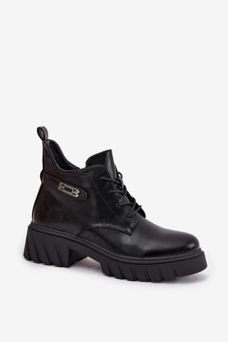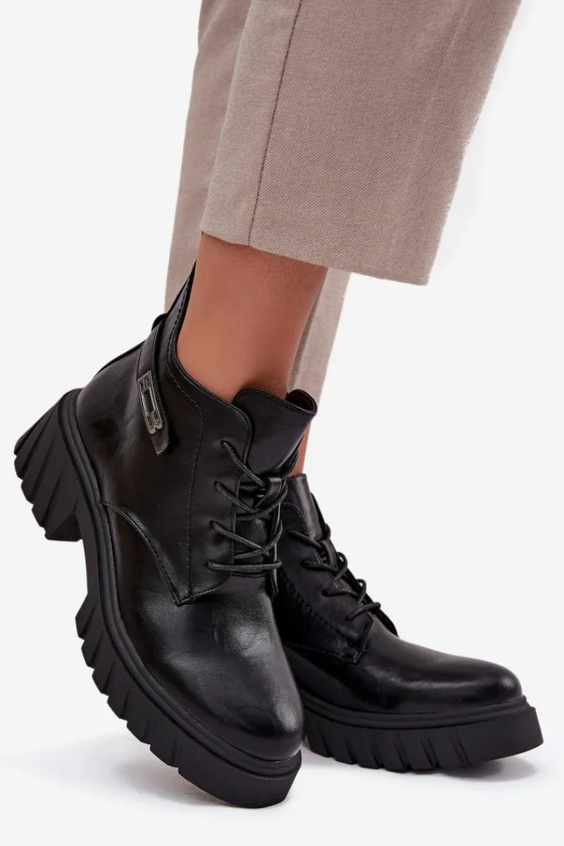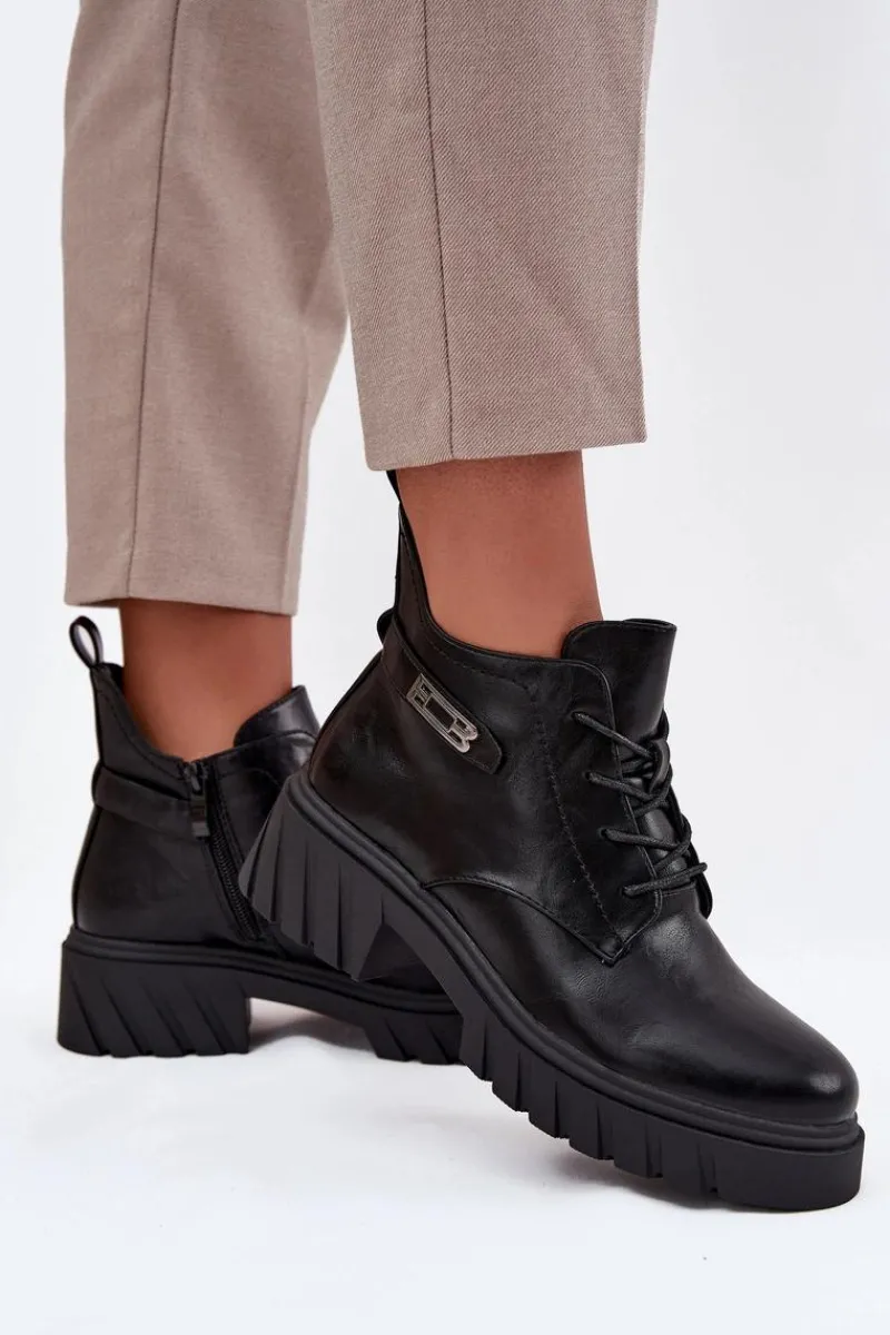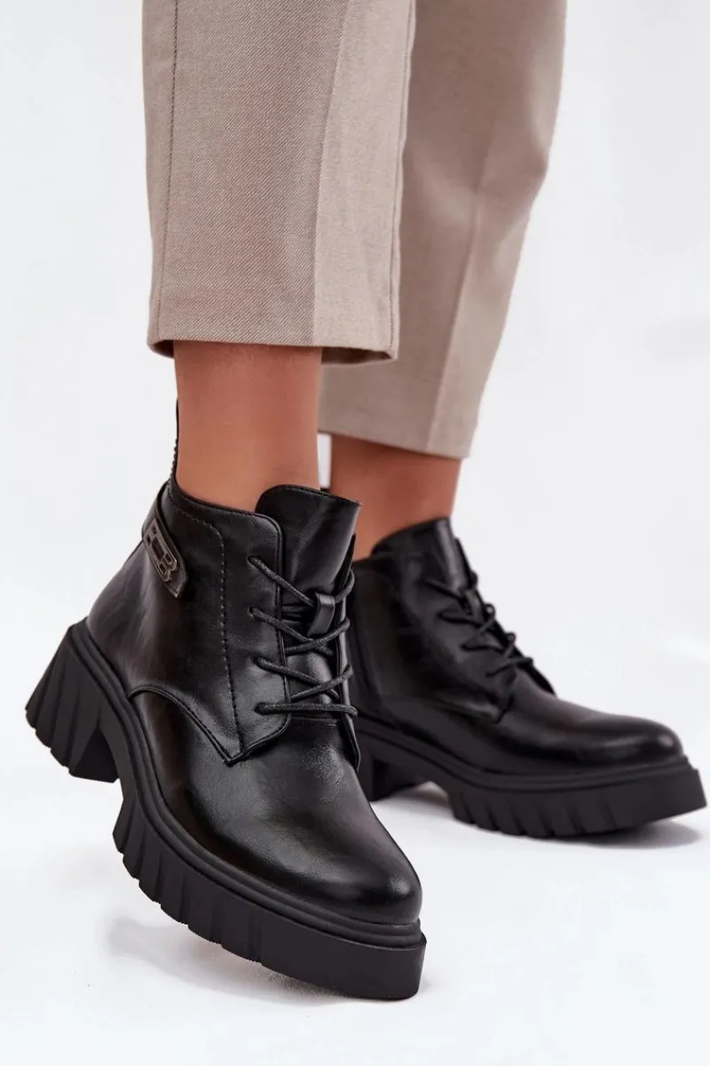 Niskie botki damskie od marki Jezzi wykonane z wysokiej jakości eko skóry to połączenie wygody i modnego wyglądu na co dzień. Osadzone na stabilnym obcasie typu klocek, zapewniają pewny krok i komfort noszenia przez cały dzień. Model łączy praktyczne sznurowanie z zamkiem błyskawicznym, co umożliwia szybkie zakładanie i idealne dopasowanie do stopy. Na cholewce znajduje się subtelny, ozdobny paseczek, który dodaje eleganckiego akcentu, sprawiając, że świetnie komponują się zarówno z casualowymi, jak i bardziej formalnymi outfitami. Przy wyborze rozmiaru prosimy sugerować się tabelą rozmiarów.