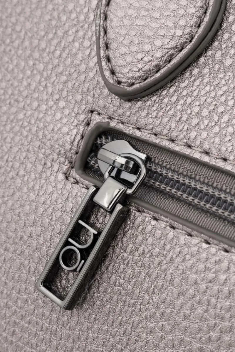 Miejska torebka damska została wykonana ze skóry ekologicznej. Klasyczny fason posiada z przodu tłoczone, przeszyte logo. Model ten mieści format A4. Torebka posiada jedną komorę zamykaną na suwak. Ponadto wnętrze tego modelu zawiera trzy kieszenie: dwie otwarte oraz jedną zapinaną na zamek. Dodatkowo do torebki został dołączony odpinany, regulowany pasek. Shopperkę można nosić na ramieniu.