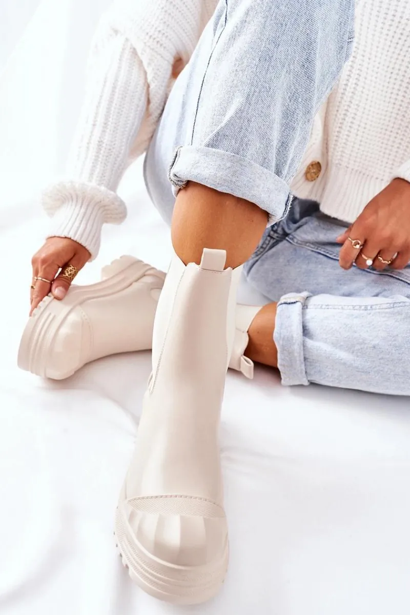 Sztyblety damskie wykonane z eko skóry. Wnętrze botków ocieplone jest miłym w dotyku kocem obuwniczym. Przy wyborze rozmiaru prosimy sugerować się tabelą rozmiarów.