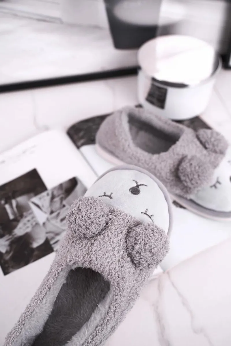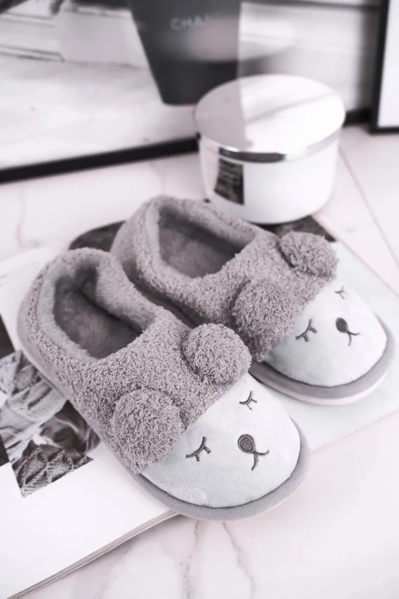 New Papcie Damskie Futrzane Misiu Szare Sweetie Damskie Kapcie Klasyczne