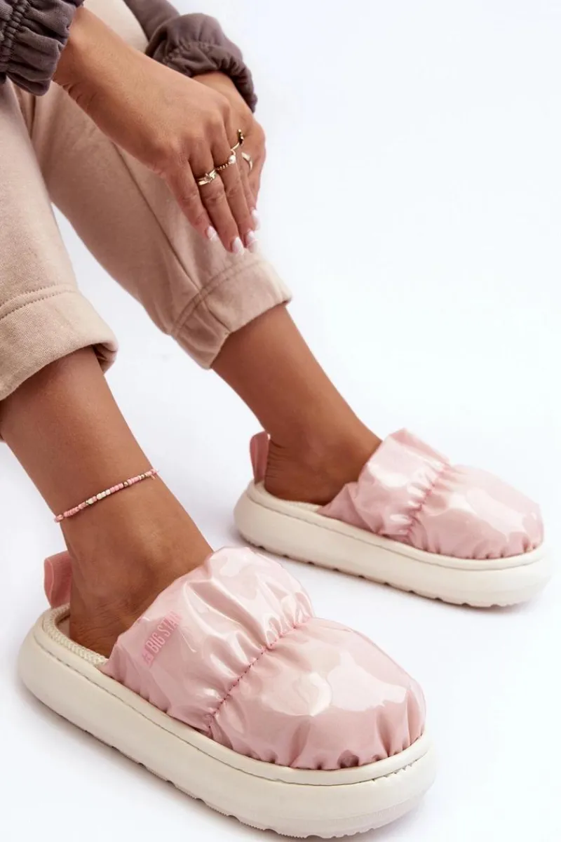 New Połyskujące Kapcie Damskie Różowe Big Star MM274129 Damskie Kapcie Klasyczne