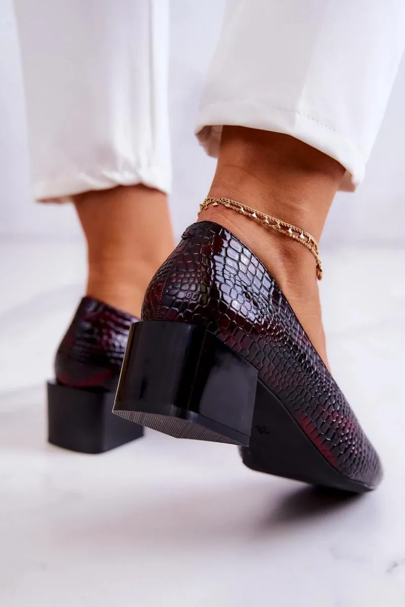 New Skórzane Wężowe Czółenka Bordowe Mesquite Damskie Czółenka Na Słupku